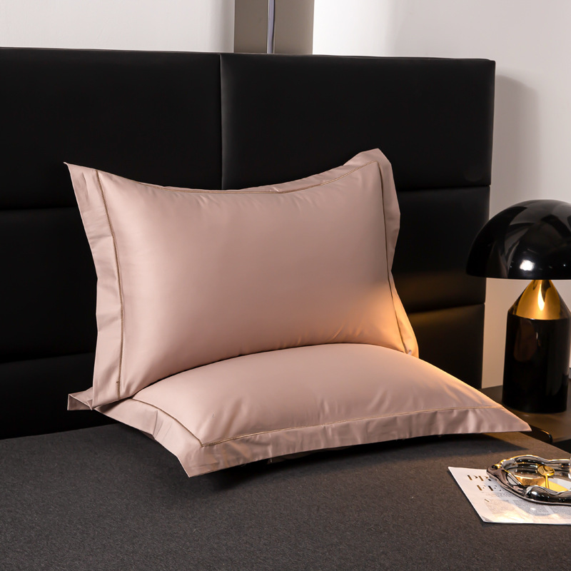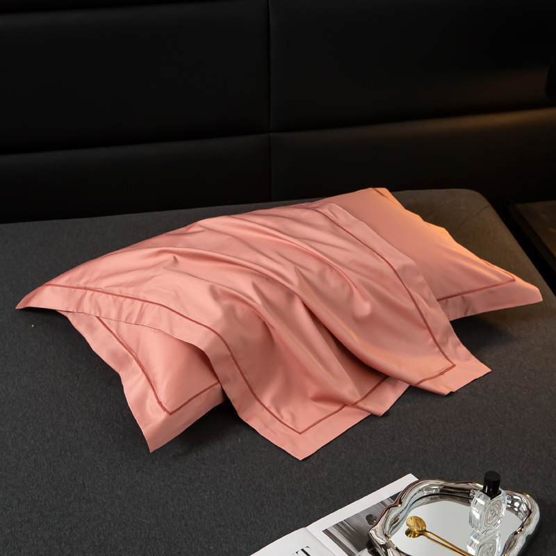 순수 코튼 새틴 롱 스테이플 코튼 100s 솔리드 컬러 심플 원라인 자수 베개 커버 싱글 성인 학생 베개 커버 도매스토어 가기