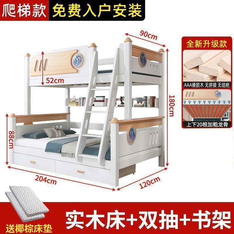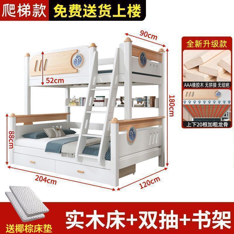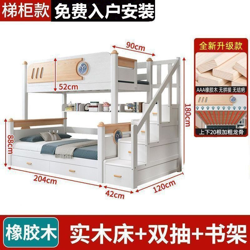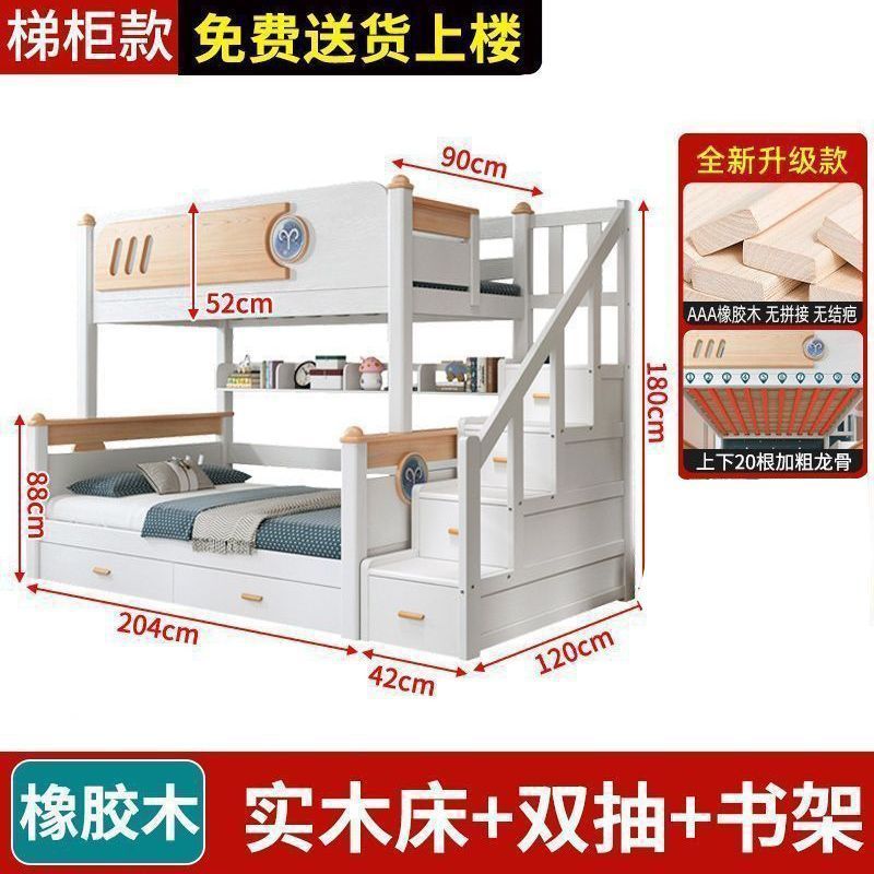 침대 침대 침대 단단한 나무 높고 낮은 침대 다기능 작은 아파트 어린이 침대 사다리 고무 나무 침대 어머니 침대
