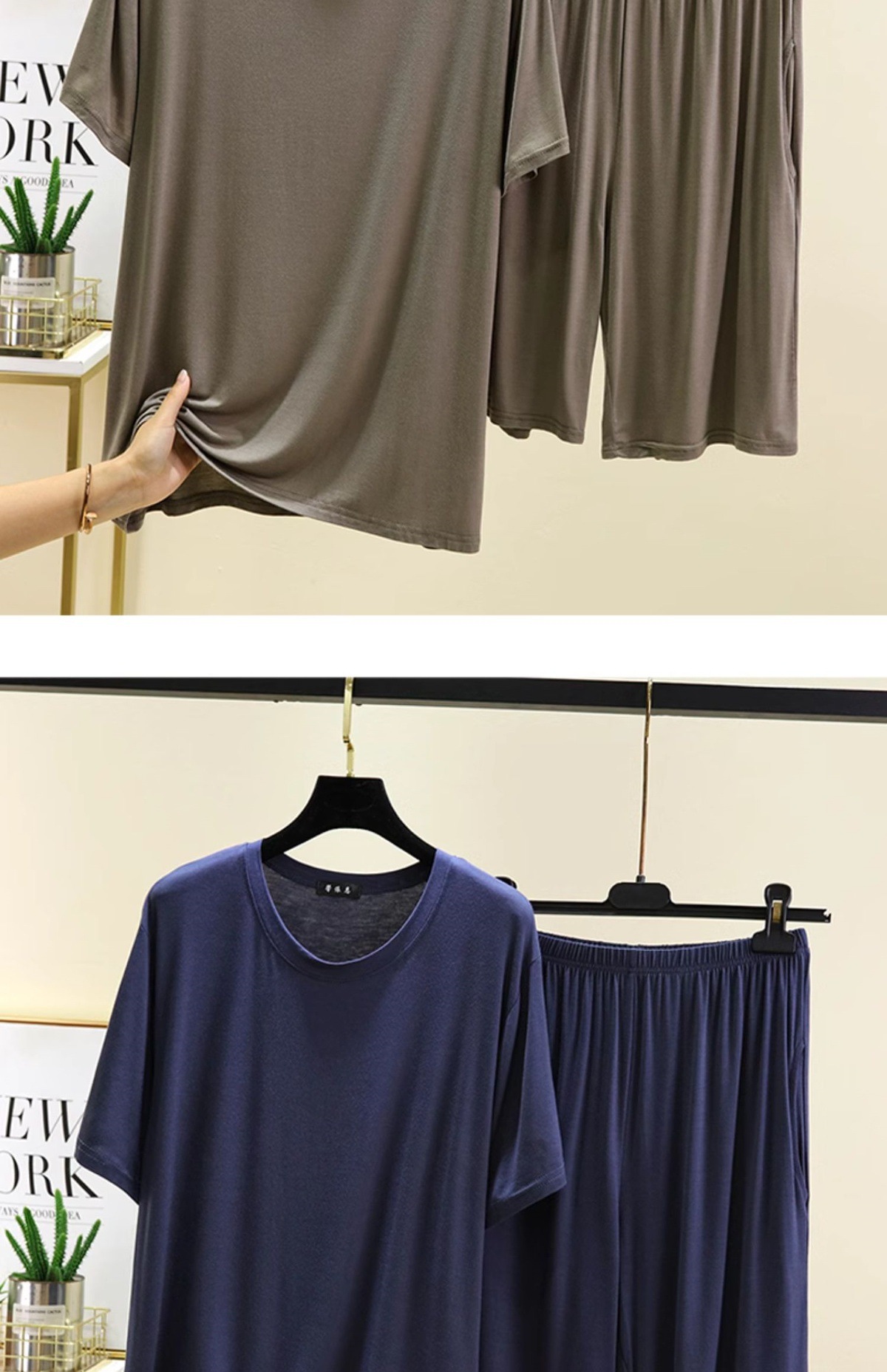 남성용 모달 잠옷 세트 느슨한 얇은 플러스 사이즈 홈 의류 반팔 반바지 투피스 캐주얼 여름스토어 가기