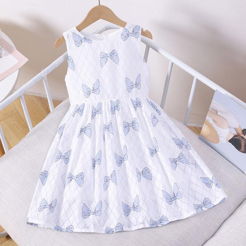 여자 민소매 원피스 여름 2024 새로운 스타일 서양식 나비 스커트 얇은 대형 어린이 면봉스토어 가기