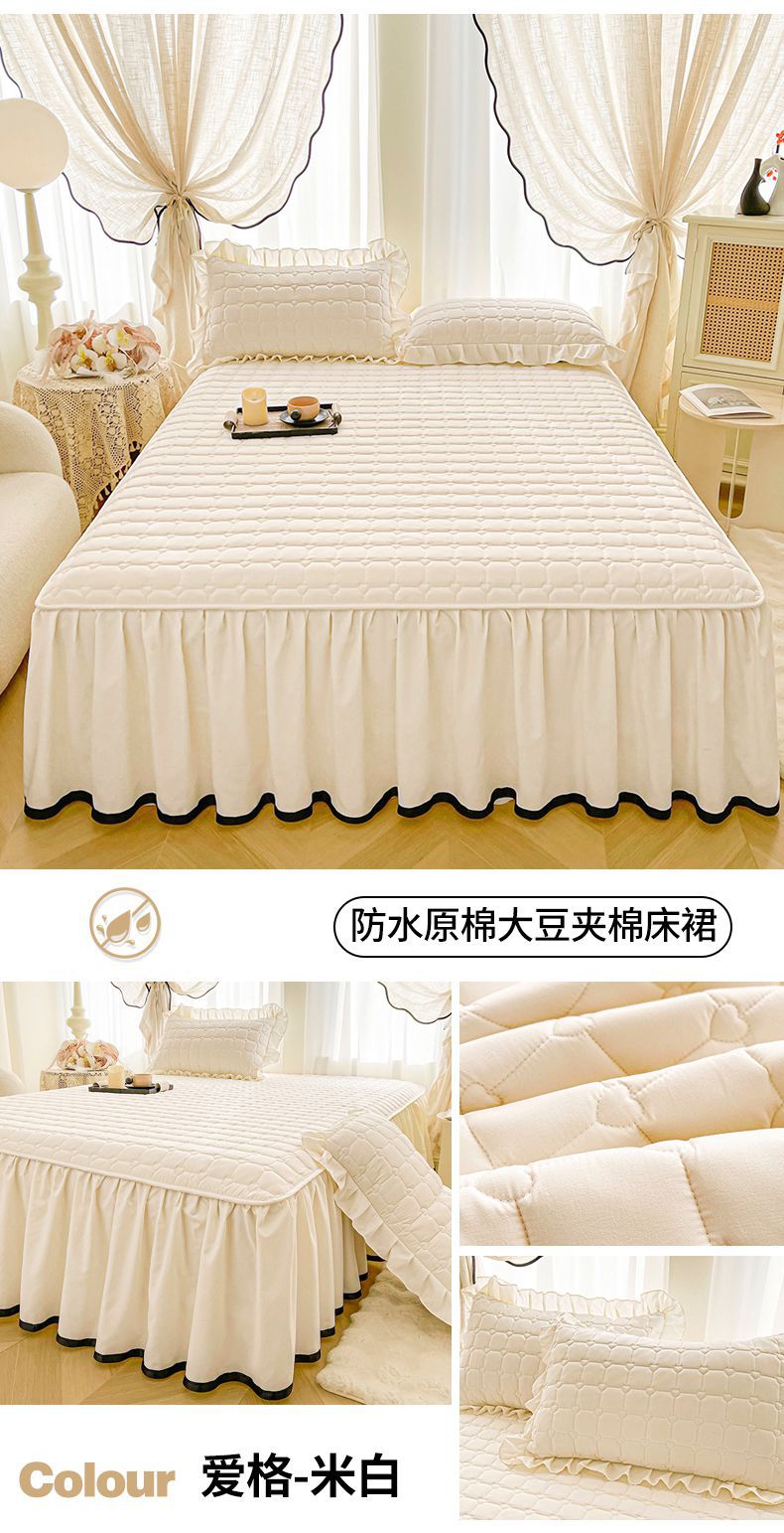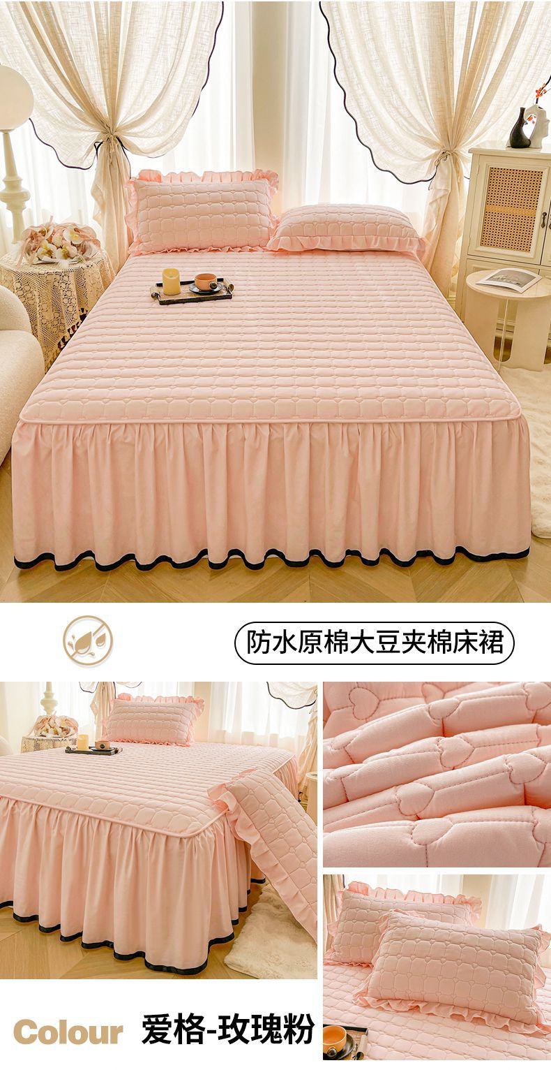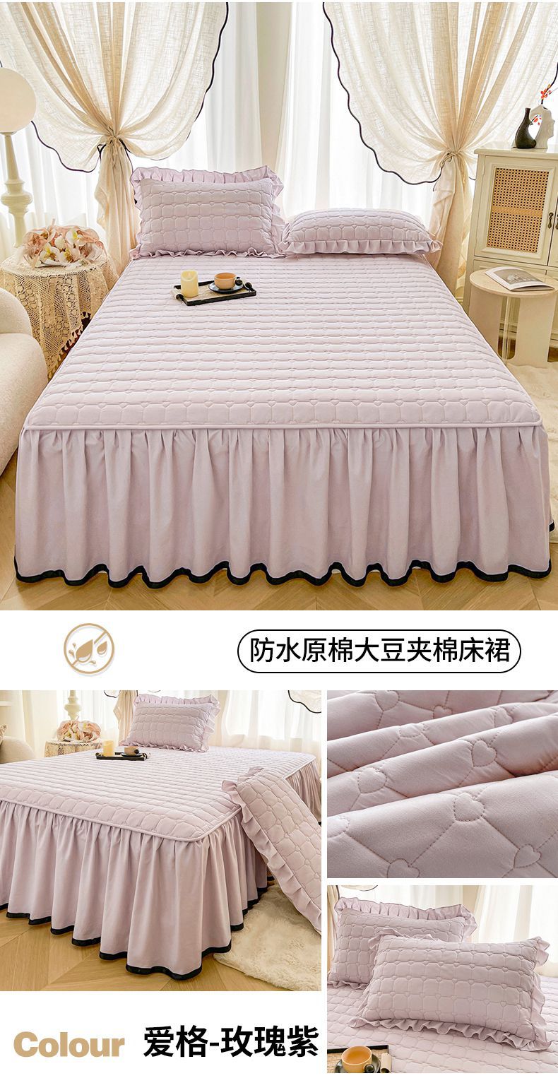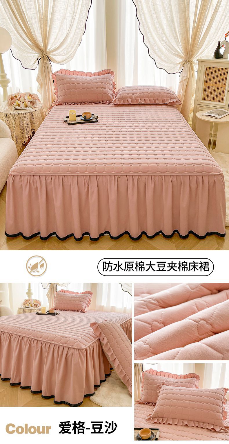 클래스 A 원면 세척 면화 방수 침대 스커트 싱글 피스 레이스 엄마와 유아 등급 두꺼운 침대 커버 3 조각 세트 미끄럼 방지 침대 커버