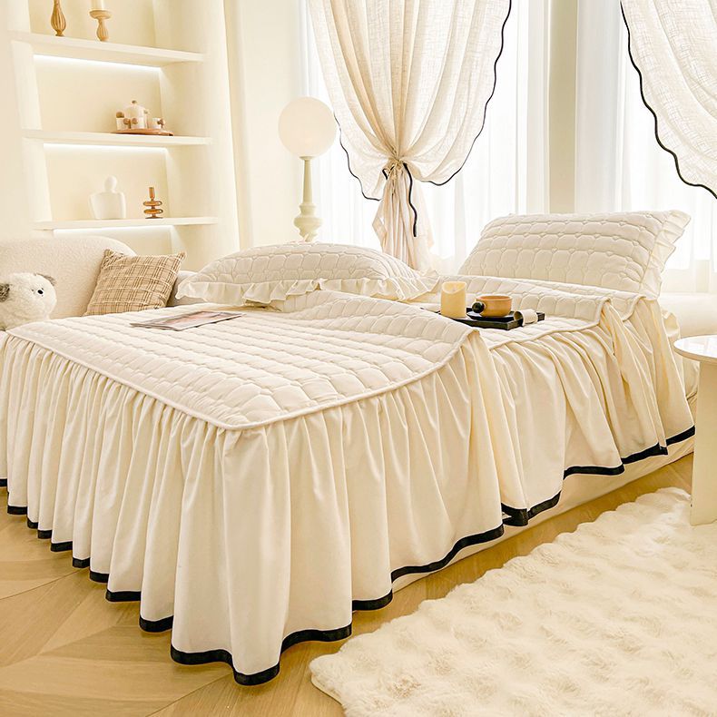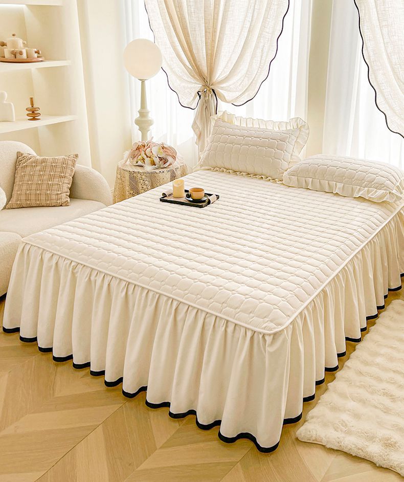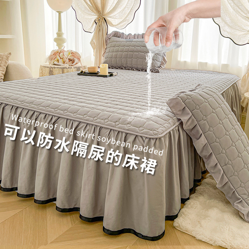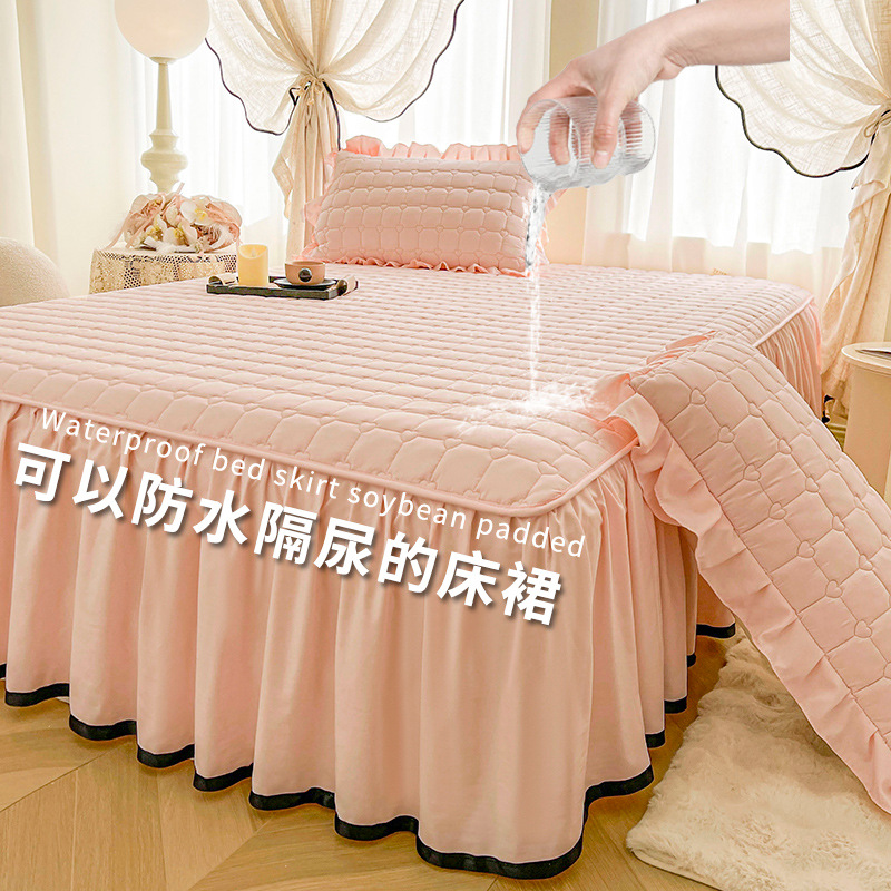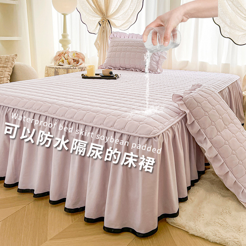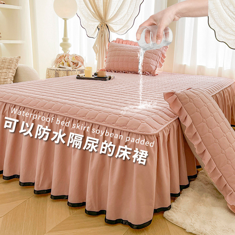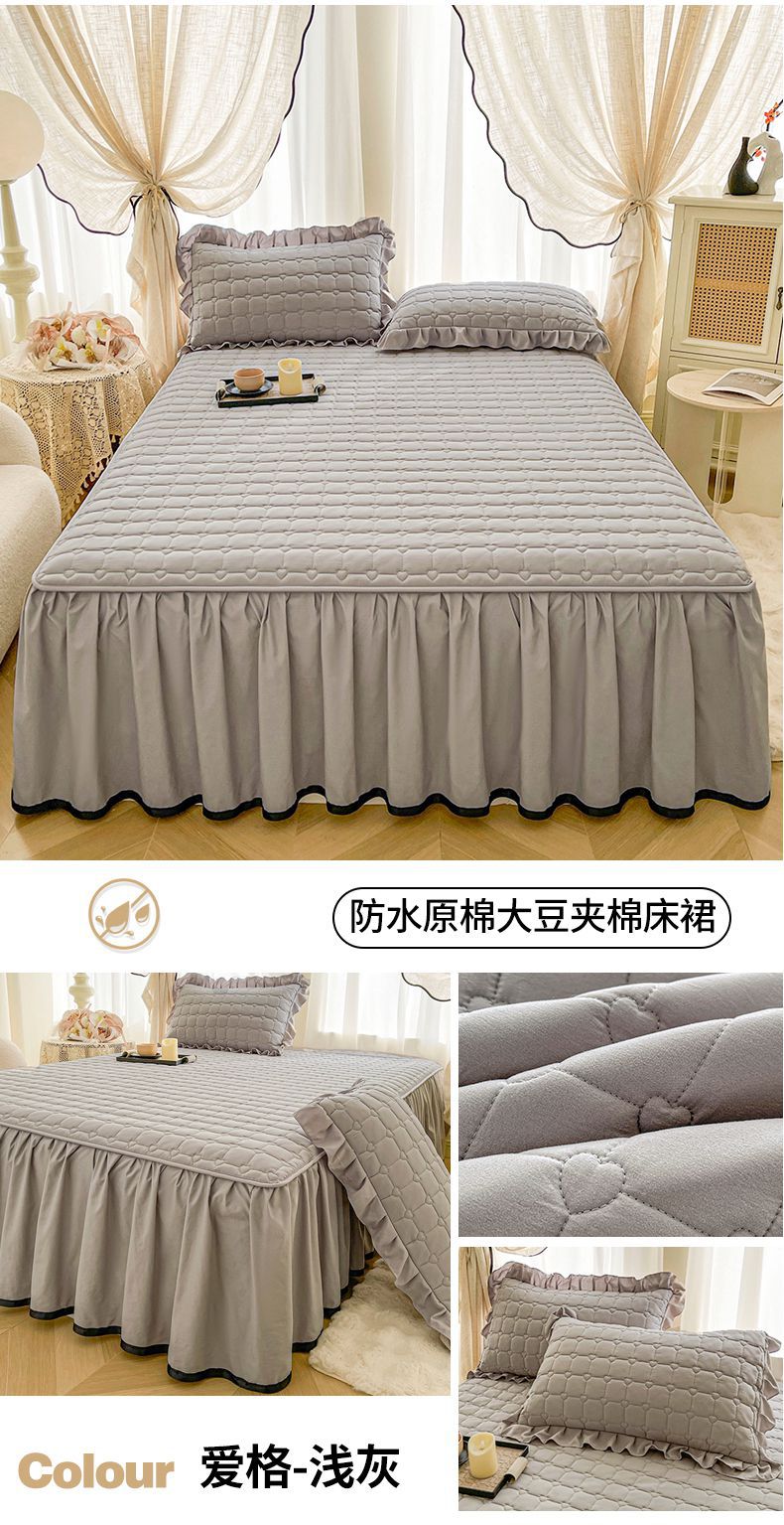 클래스 A 원면 세척 면화 방수 침대 스커트 싱글 피스 레이스 엄마와 유아 등급 두꺼운 침대 커버 3 조각 세트 미끄럼 방지 침대 커버