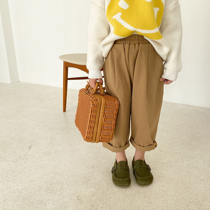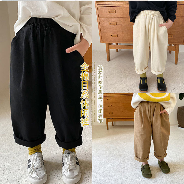 여자 한국식 당근 바지 아기 아이들의 봄 새로운 느슨한 넓은 다리 바지 일본식 소년 바지스토어 가기
