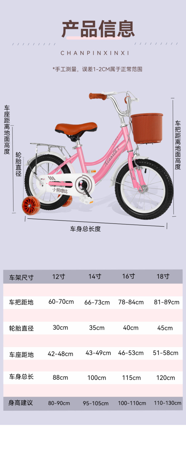 新款儿童自行车小孩子3岁4岁5岁6岁男女12寸14寸16寸18寸小孩童车