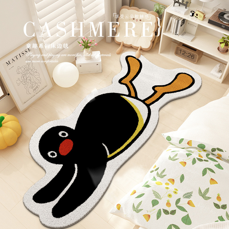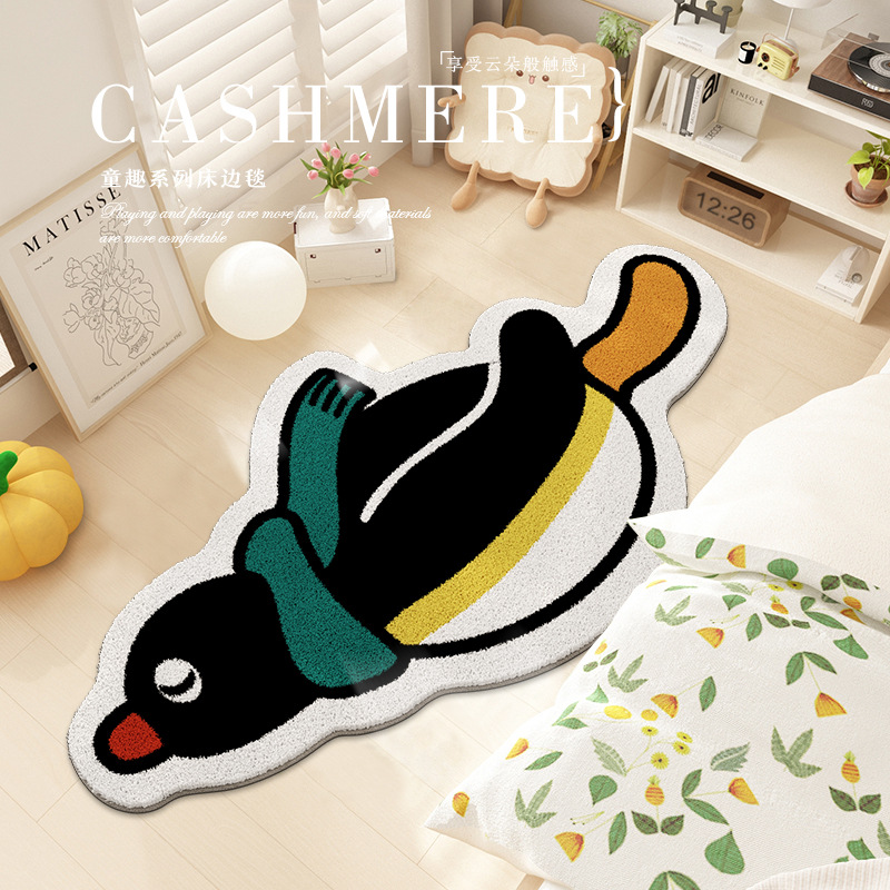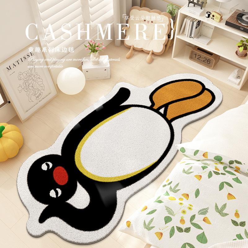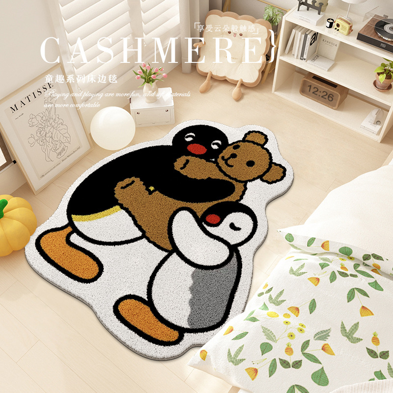 귀여운 만화 펭귄 캐시미어 바닥 매트 홈 침실 거실 피부 친화적 인 편안한 케어 침대 옆 담요 재고스토어 가기