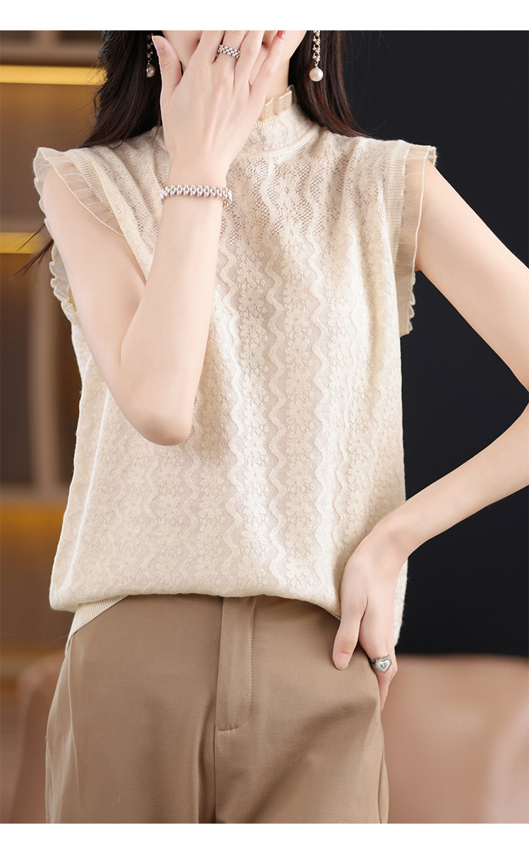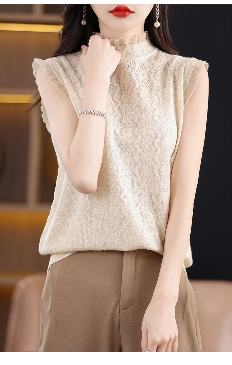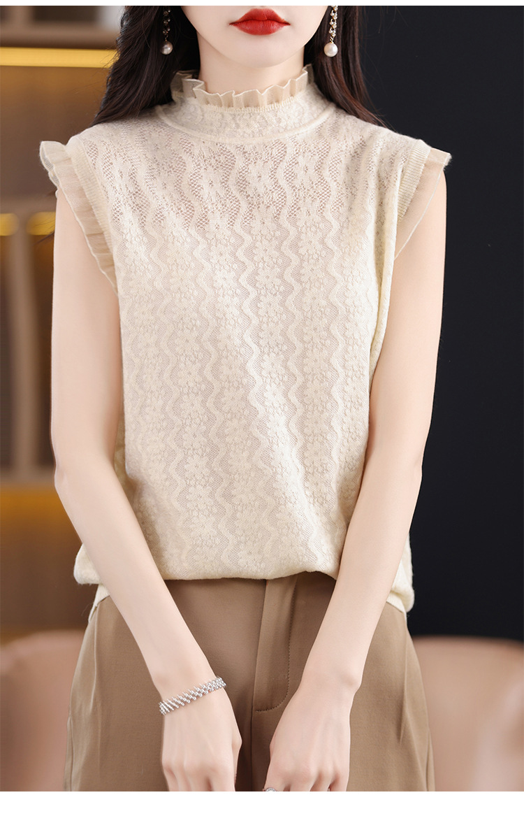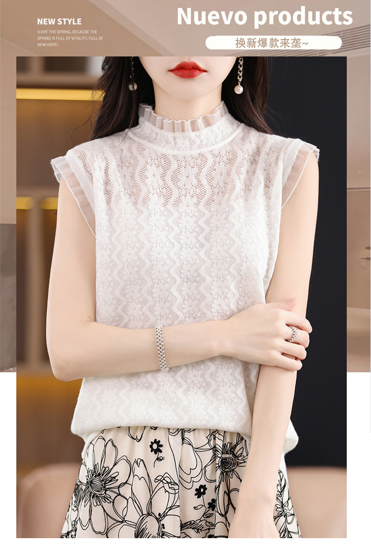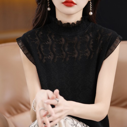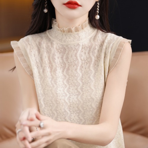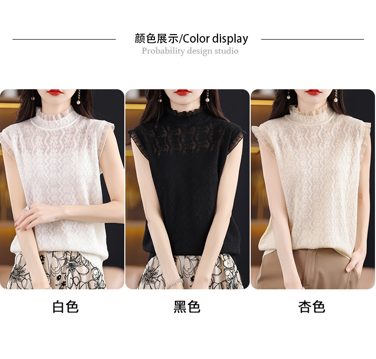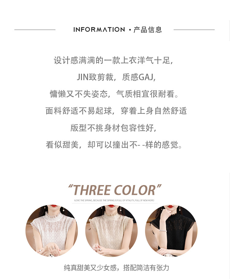 하프 하이 칼라 가짜 칼라 올 매치 여자 가을 겨울 카미솔 레이스 칼라 레이스베이스 셔츠 민소매 탑