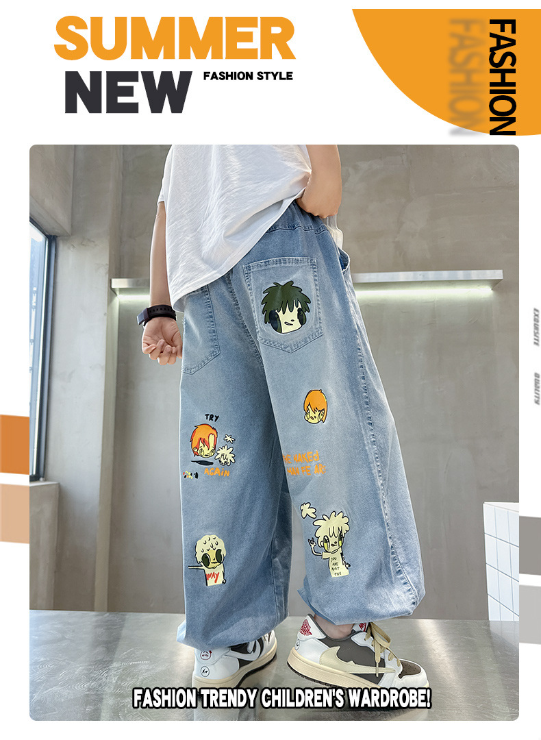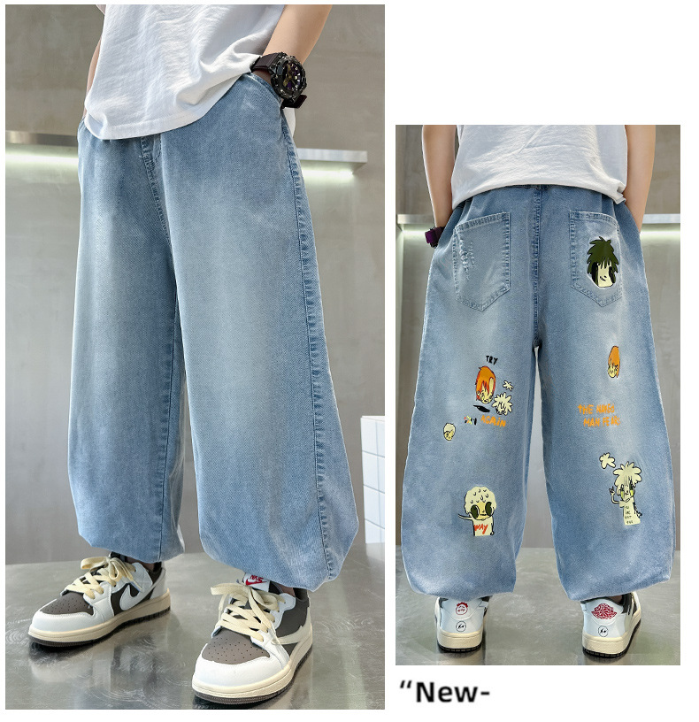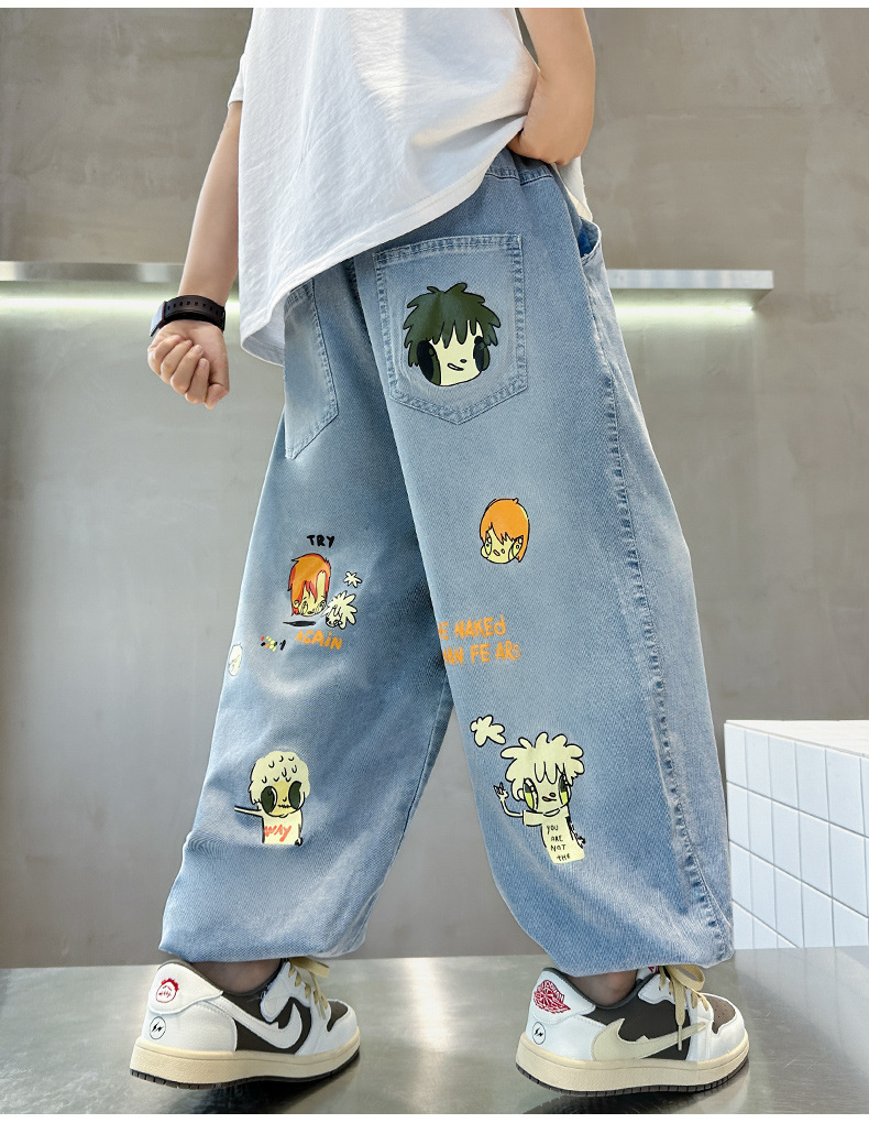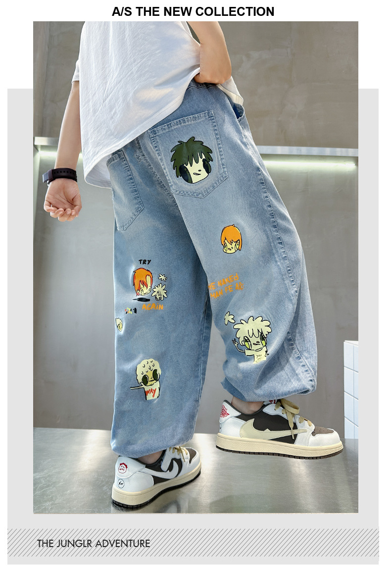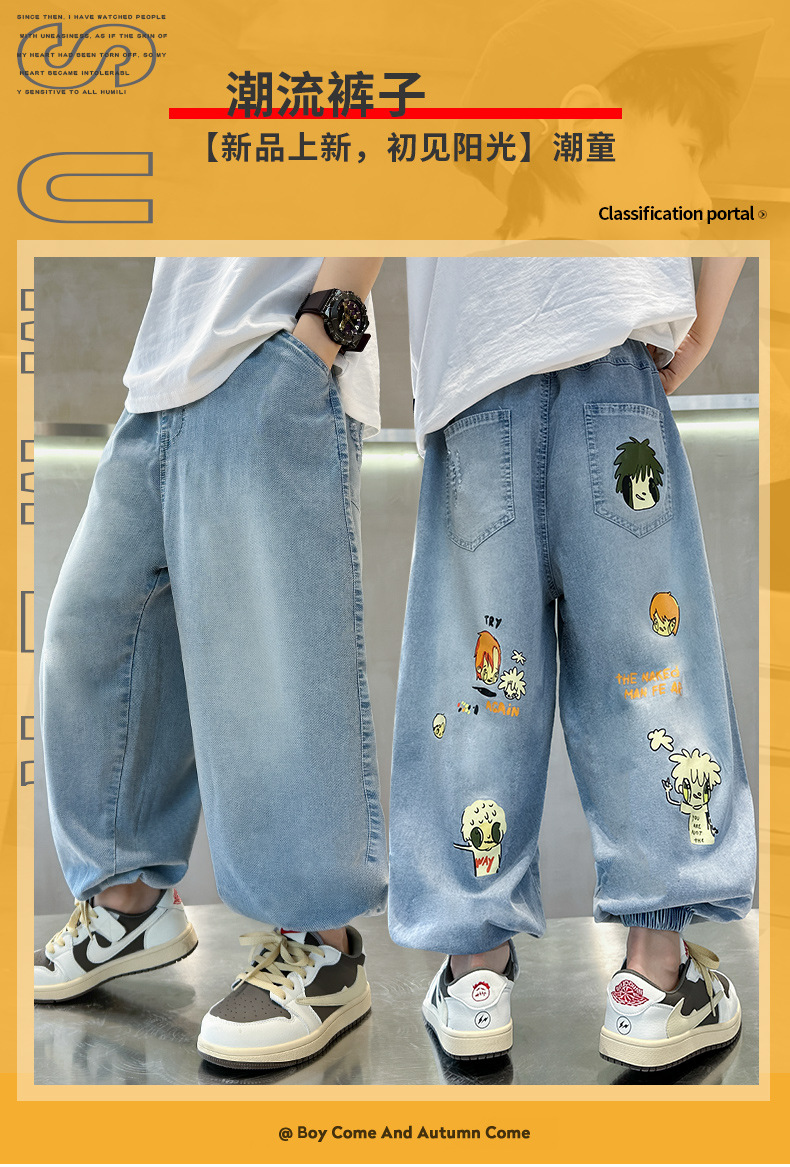 소년 바지 봄 2025 새로운 유행 어린이 청바지 가을과 겨울 중 큰 소년 캐주얼 바지스토어 가기