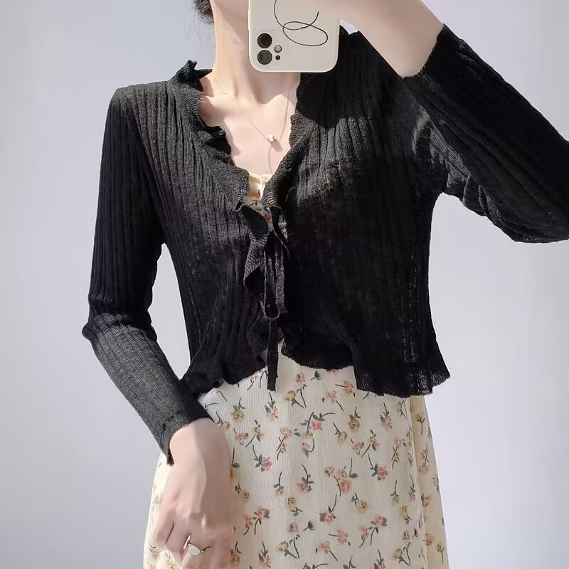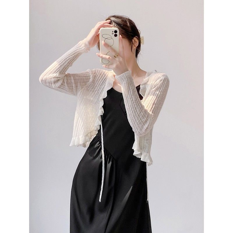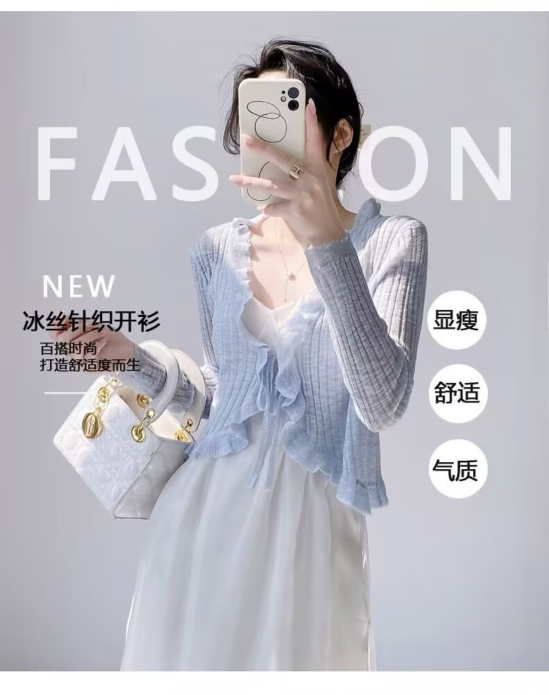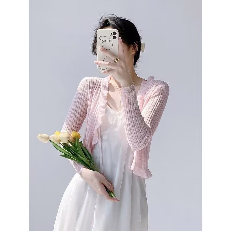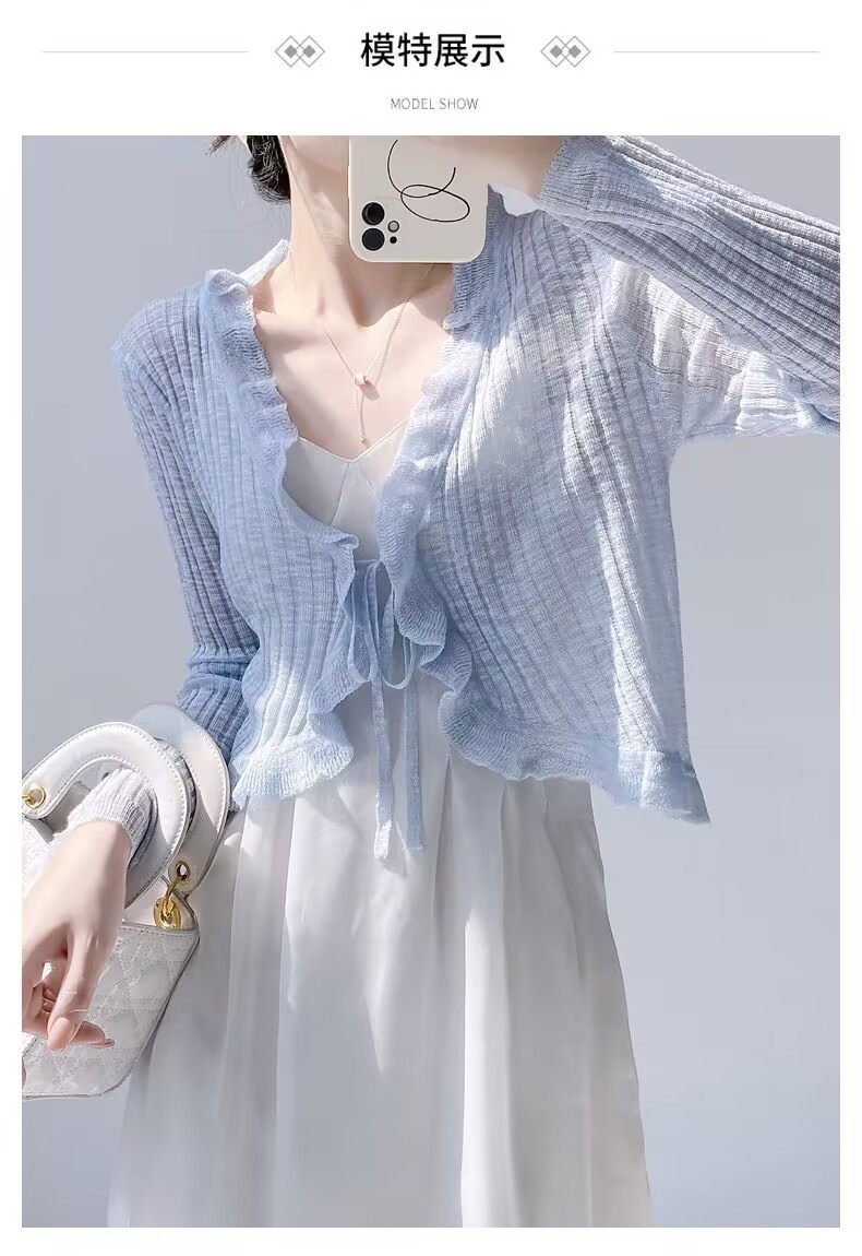 선스크린 니트 카디건 여성용 얇은 슬립 스커트 외부 착용 에어컨 블라우스 여름 목도리 아이스 실크 작은 웨이슬 페어리 재킷