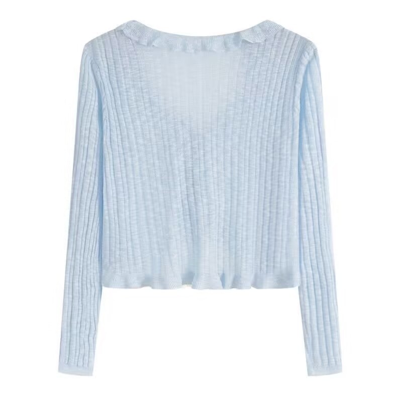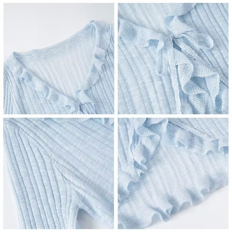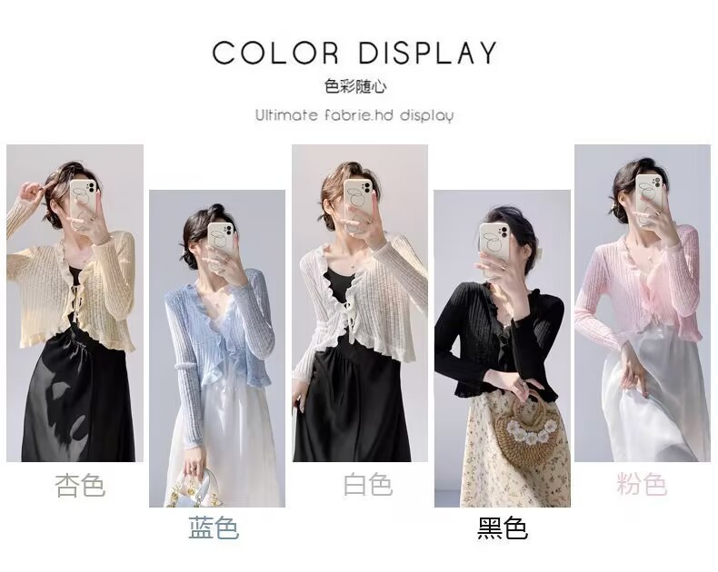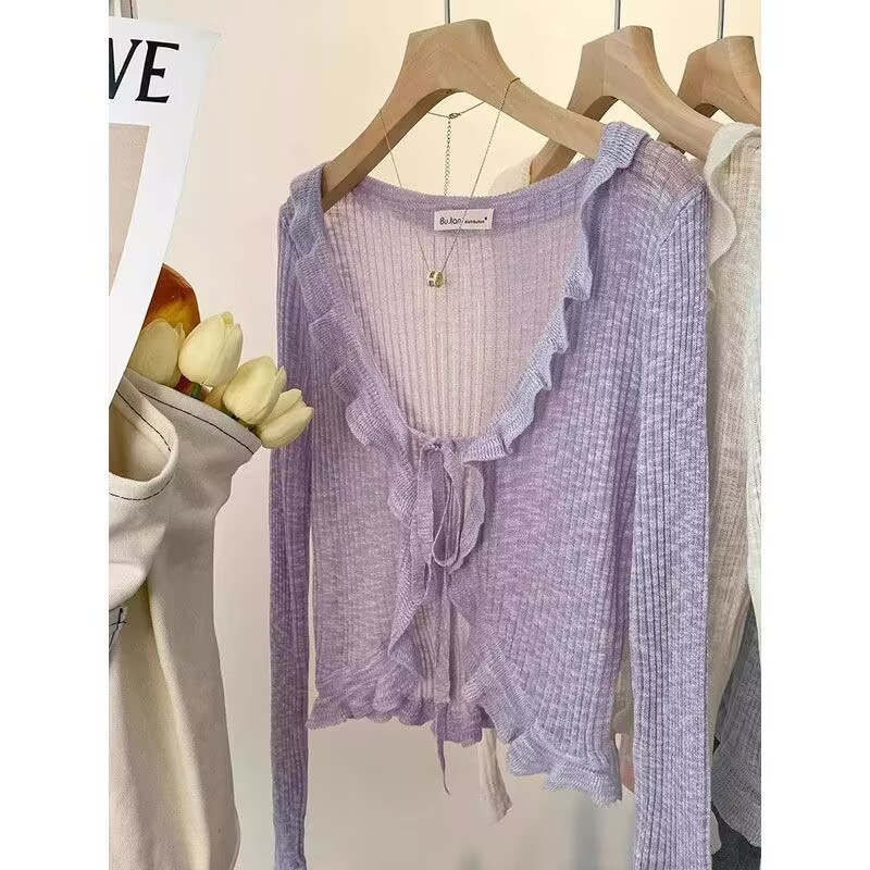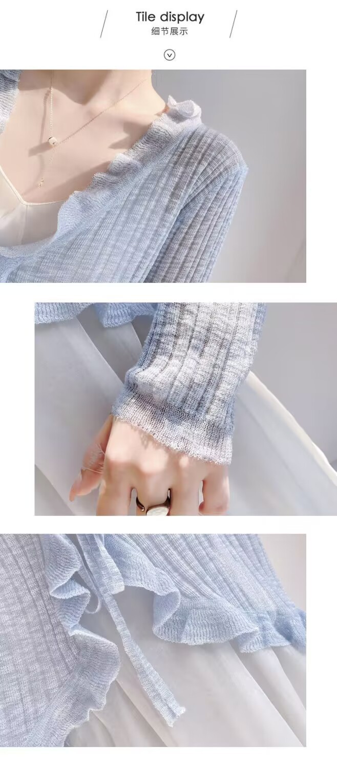 선스크린 니트 카디건 여성용 얇은 슬립 스커트 외부 착용 에어컨 블라우스 여름 목도리 아이스 실크 작은 웨이슬 페어리 재킷