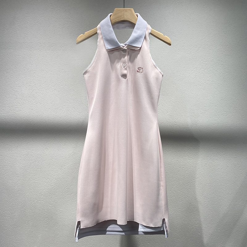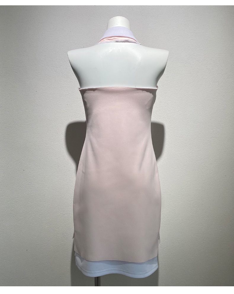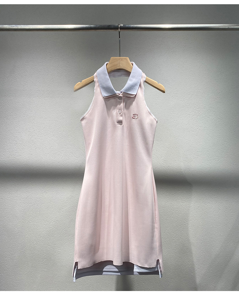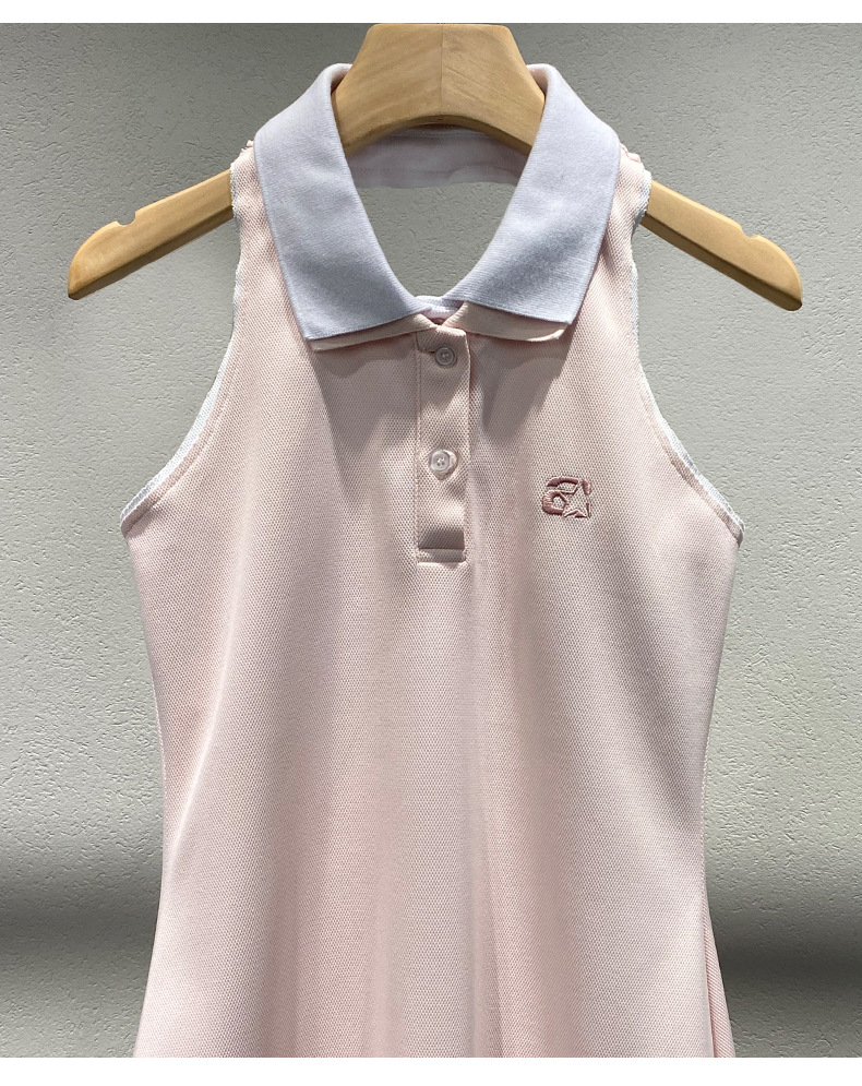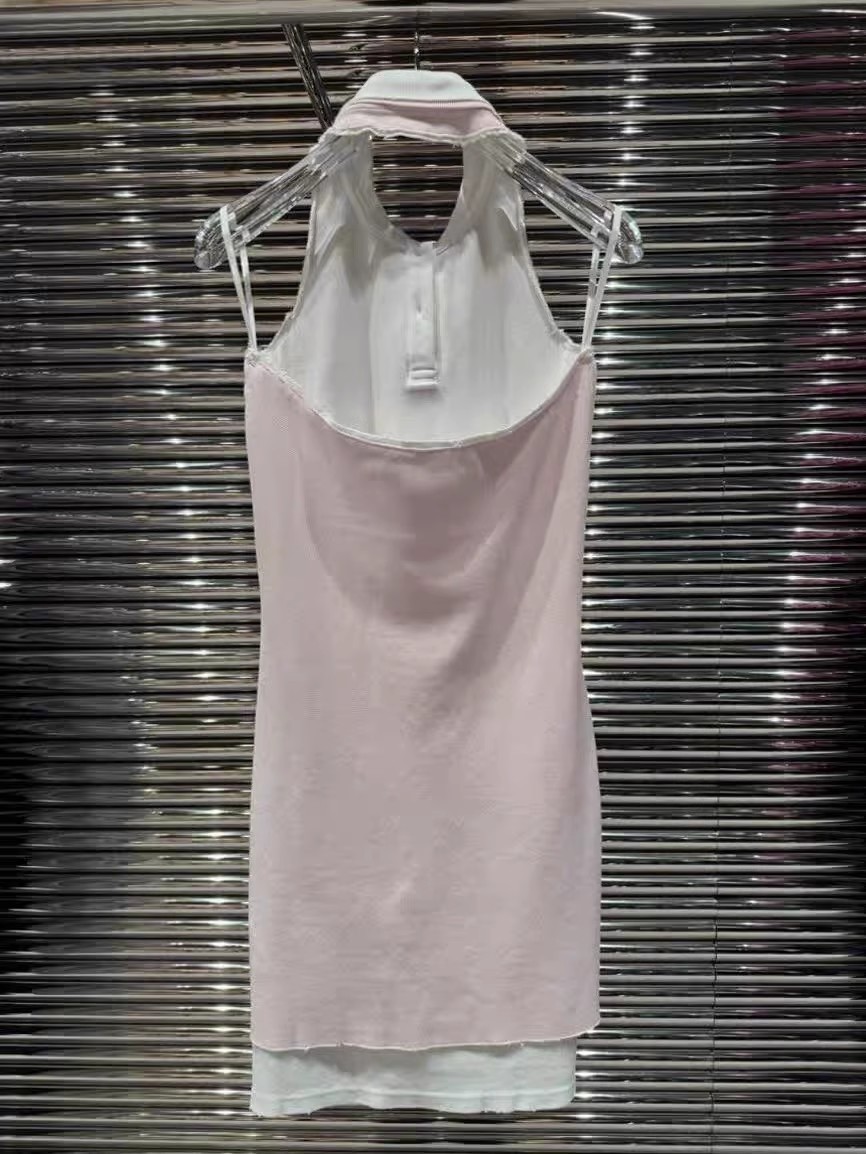 2025년 여름 신상 배색 라펠 민소매 레터링 베스트 원피스 투피스 스타일 슬림핏 여성 원피스스토어 가기