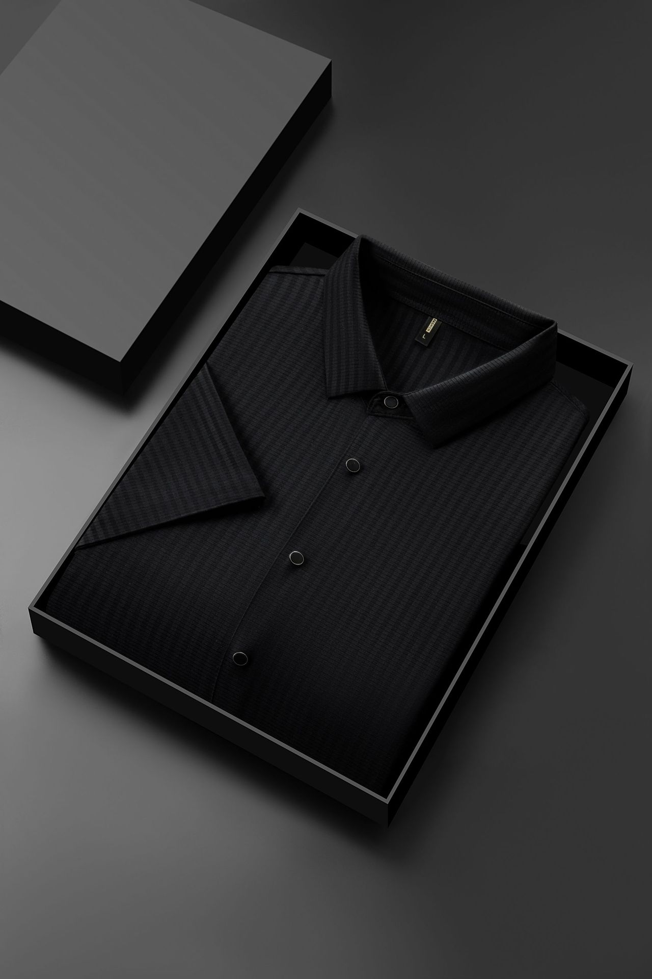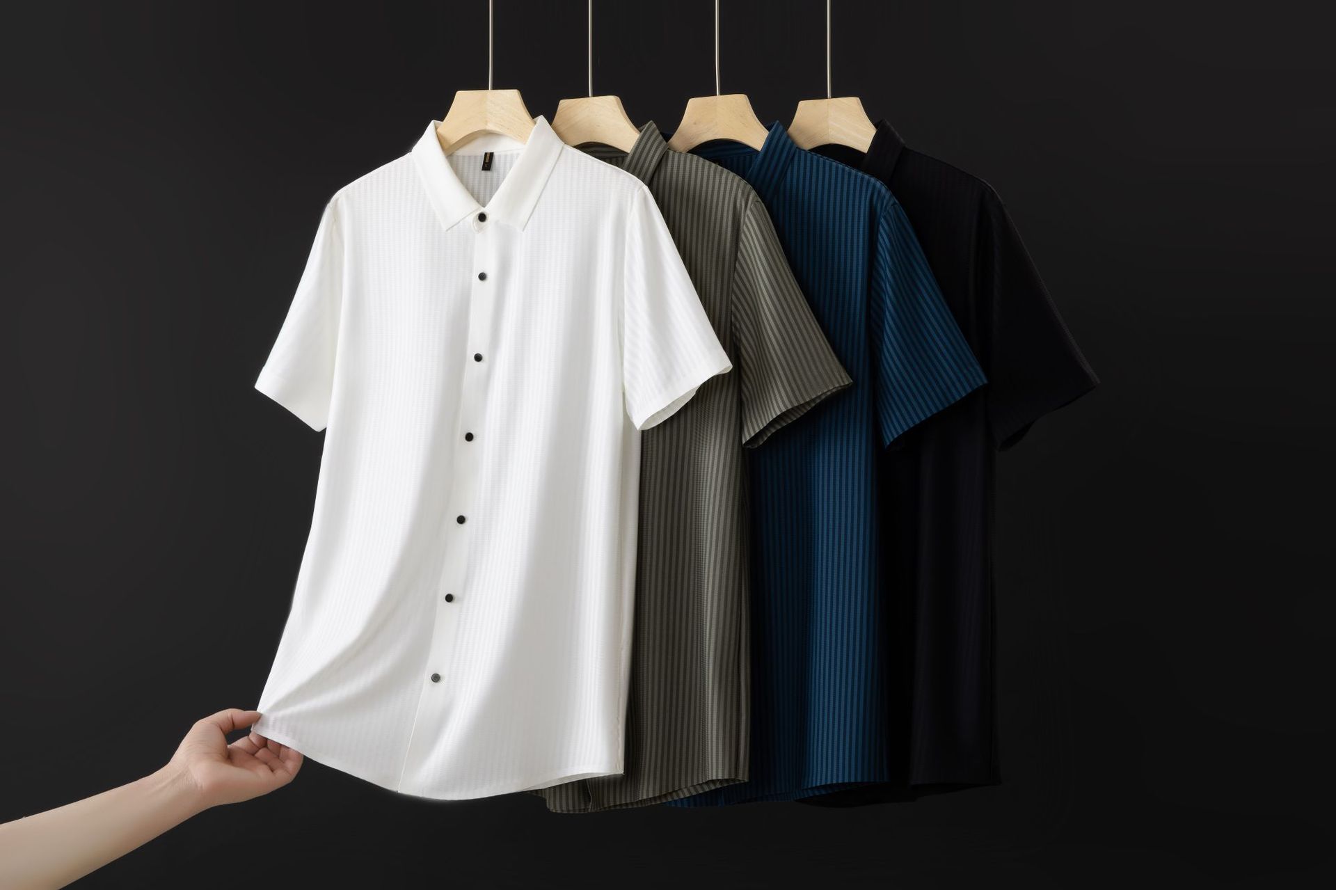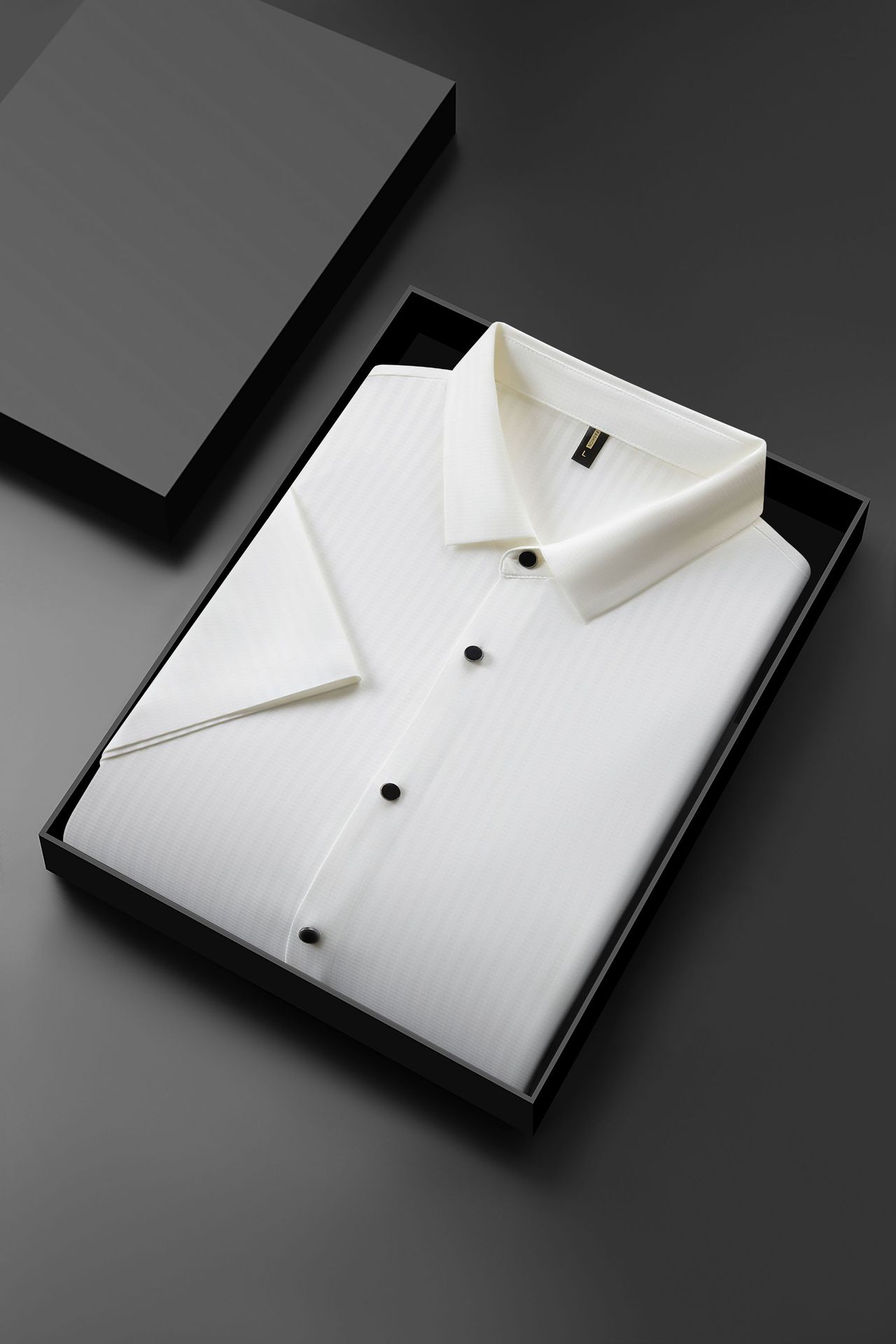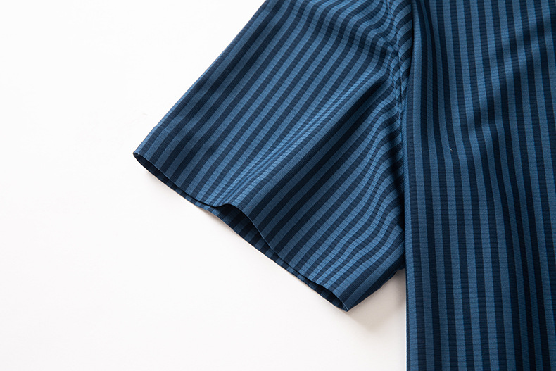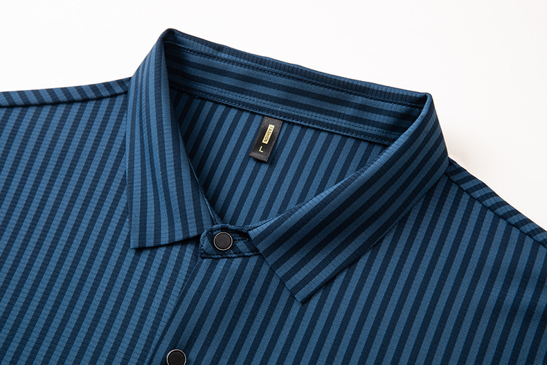 아이스 실크 탄성 얇은 반팔 셔츠 남자의 여름 새로운 사업 캐주얼 얇은 줄무늬 인쇄 남성 셔츠