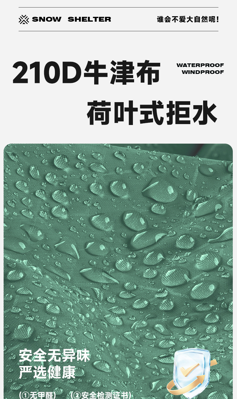 • 중간 짙은 녹색 210*210*140 방수 PU 옥스포드 실버 접착제