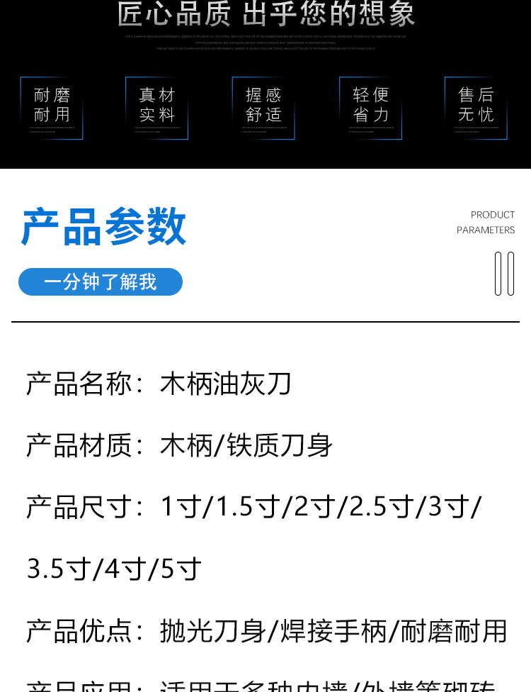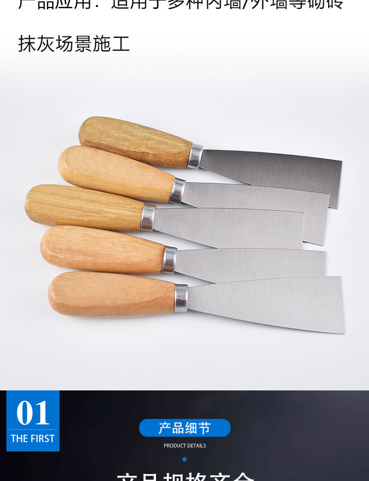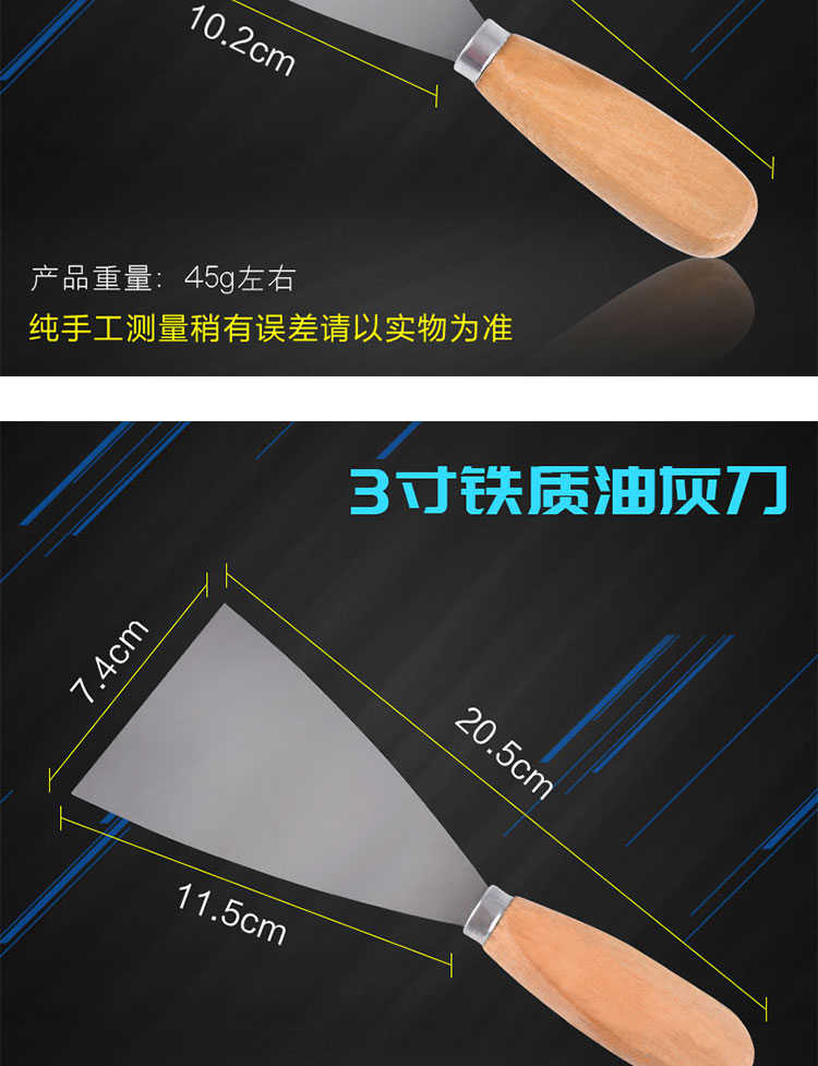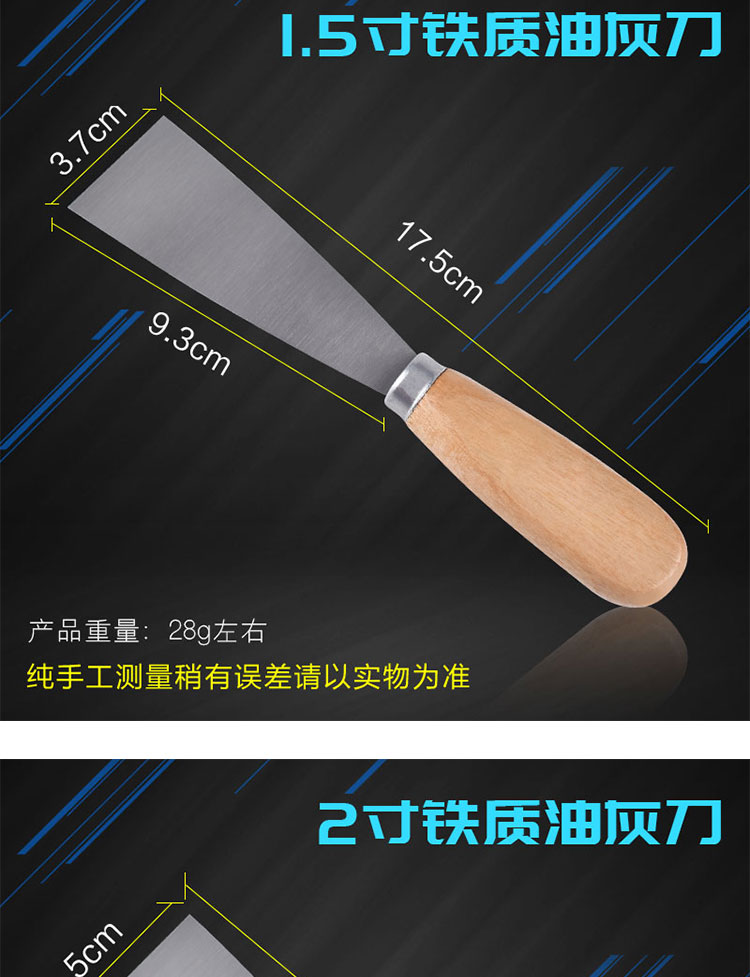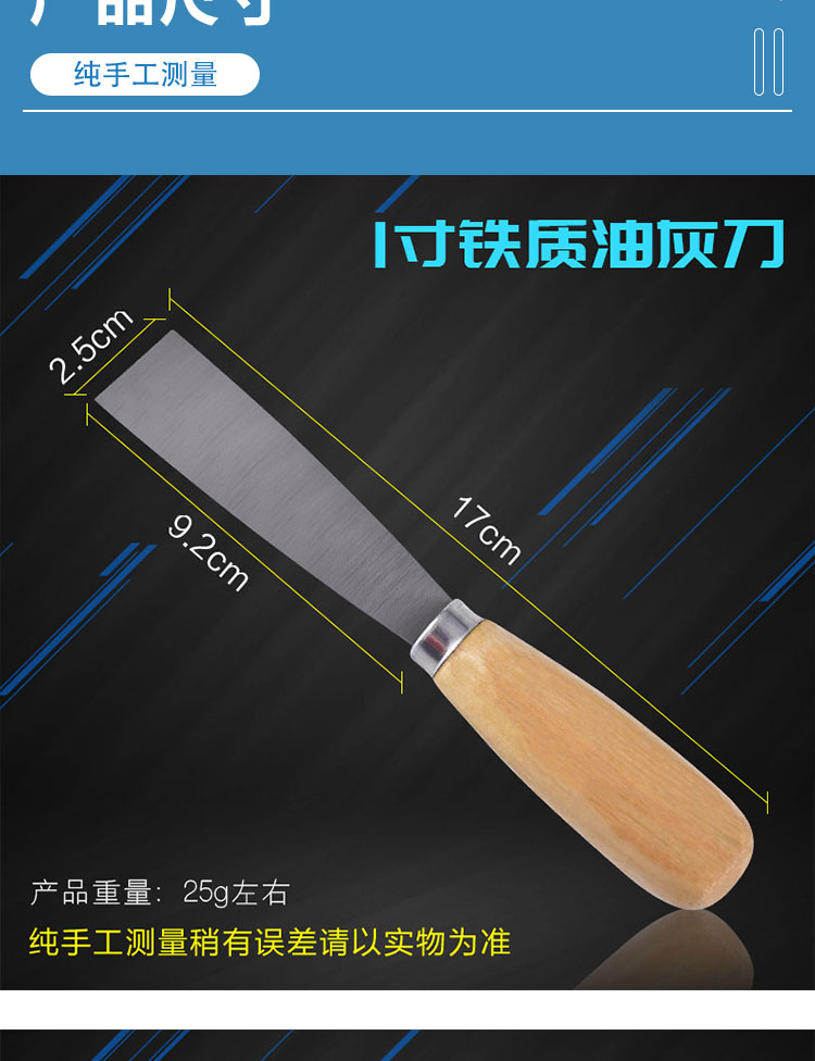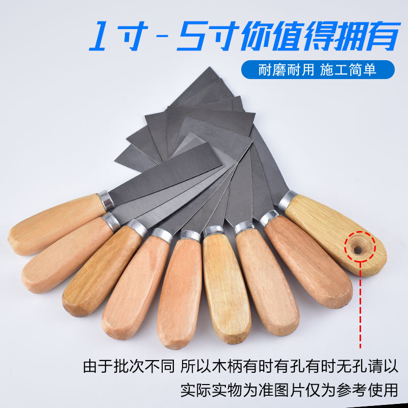나무 손잡이 퍼티 나이프 1-5 인치 퍼티 나이프 청소 블레이드 스크레이퍼 파우더 작은 블레이드 석고 진흙 벽 배치 회색 나이프 전문가스토어 가기