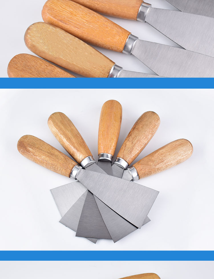 나무 손잡이 퍼티 나이프 1-5 인치 퍼티 나이프 청소 블레이드 스크레이퍼 파우더 작은 블레이드 석고 진흙 벽 배치 회색 나이프 전문가
