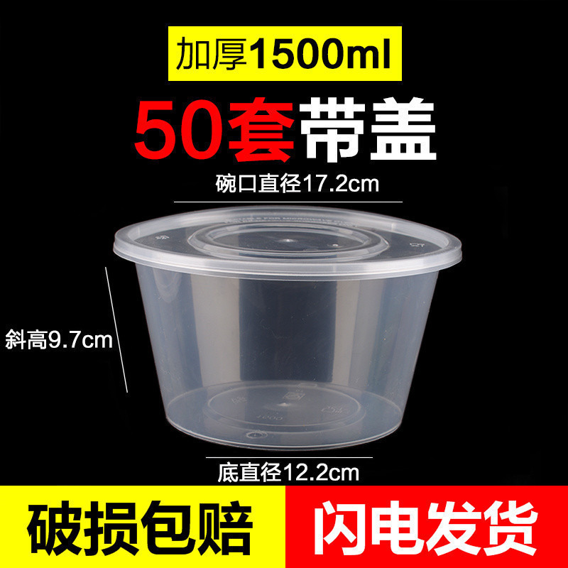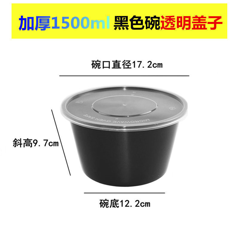 • 투명뚜껑이 있는 검정색 그릇 1500ml (50개 세트)⚑