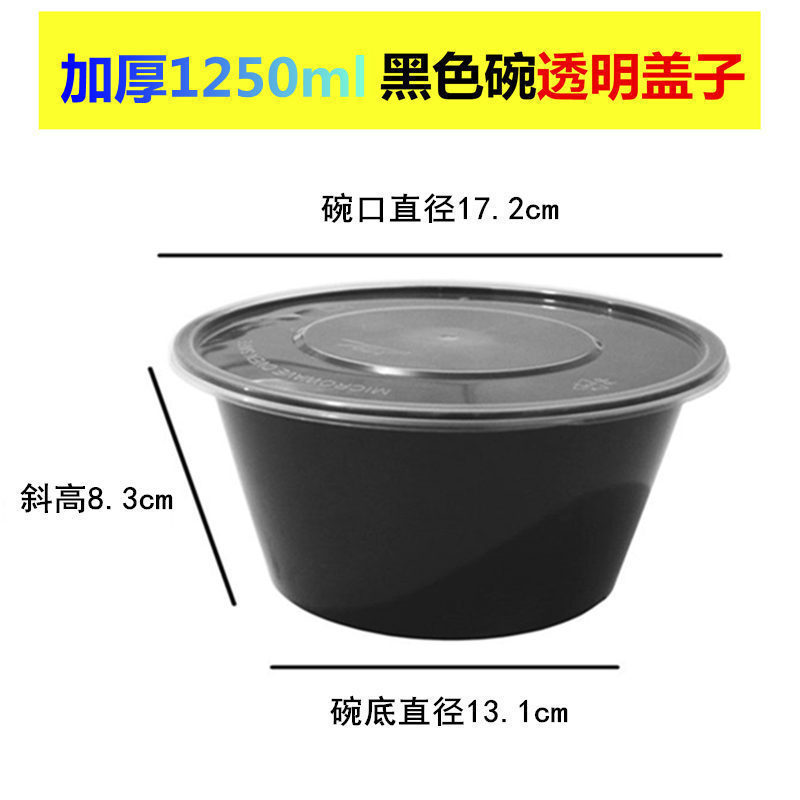 • 투명뚜껑이 있는 검정색 그릇 1250ml (50개 세트) ⚑