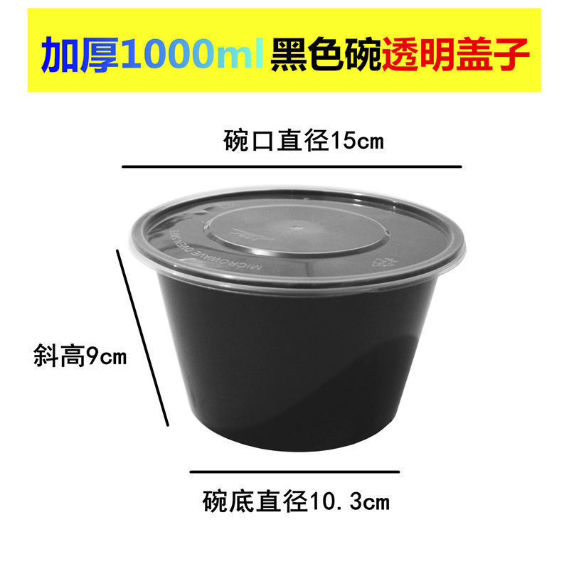 • 투명뚜껑이 있는 검정색 그릇 1000ml (50개 세트)⚑