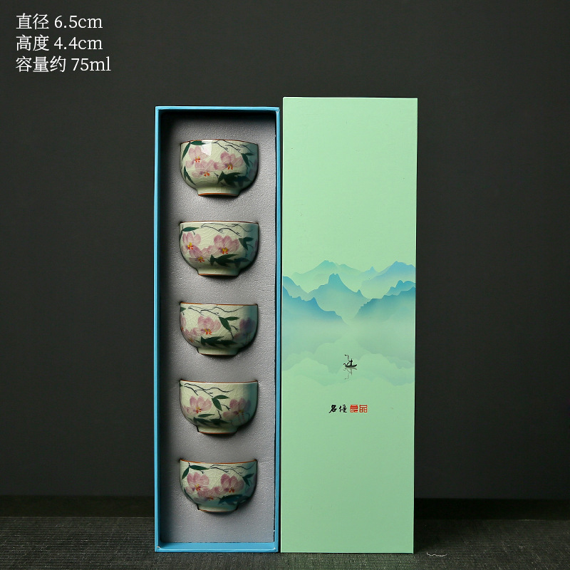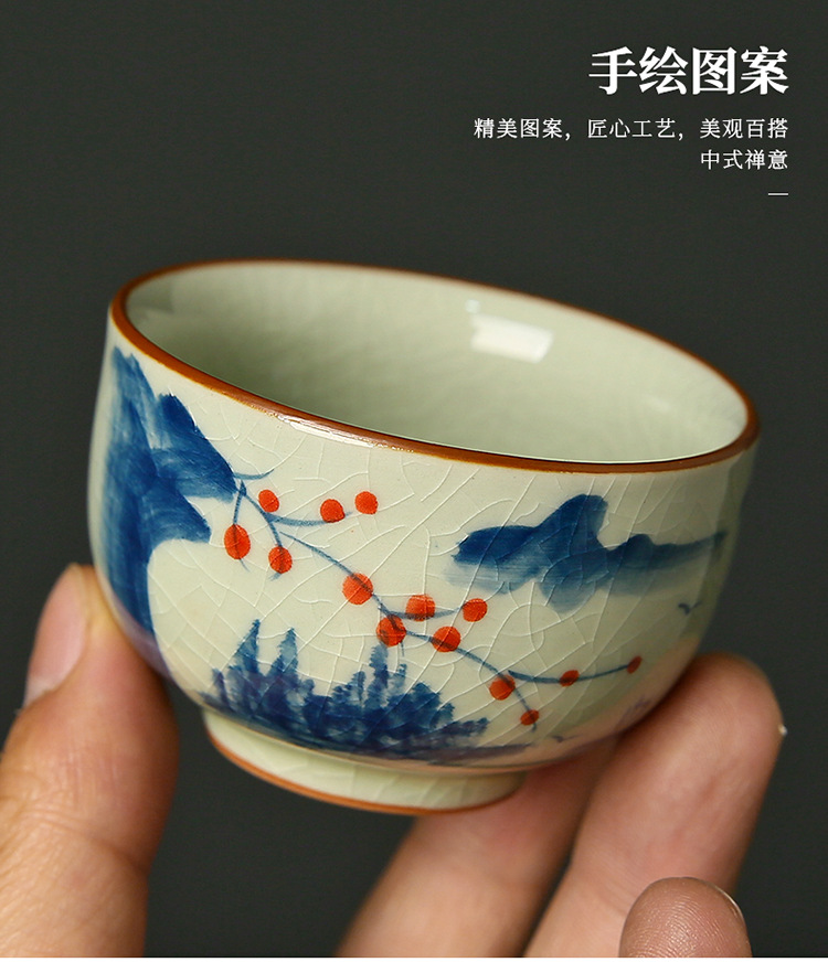 손으로 그린 Ge 가마 유약 컬러 차 컵 차 컵 세트 홈 세라믹 마스터 컵