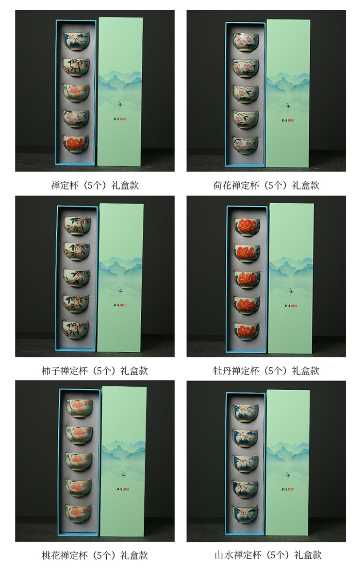 • 게야오 손으로 그린 ​​선 컵(연꽃 5개) 선물 상자