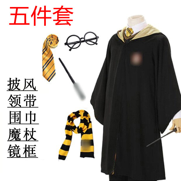 • (8종 세트) 노란색 싱글 가운 + 넥타이 + 스카프 + 프레임 + 마술 지팡이 + 마법사 모자 + 셔츠 + 스웨터