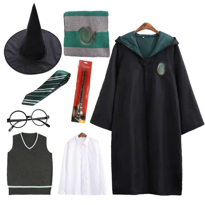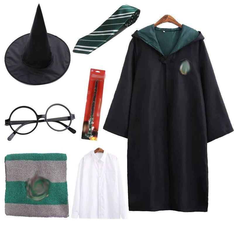 • (8종 세트) 녹색 가운 + 넥타이 + 스카프 + 프레임 + 마술 지팡이 + 마법사 모자 + 셔츠 + 스웨터