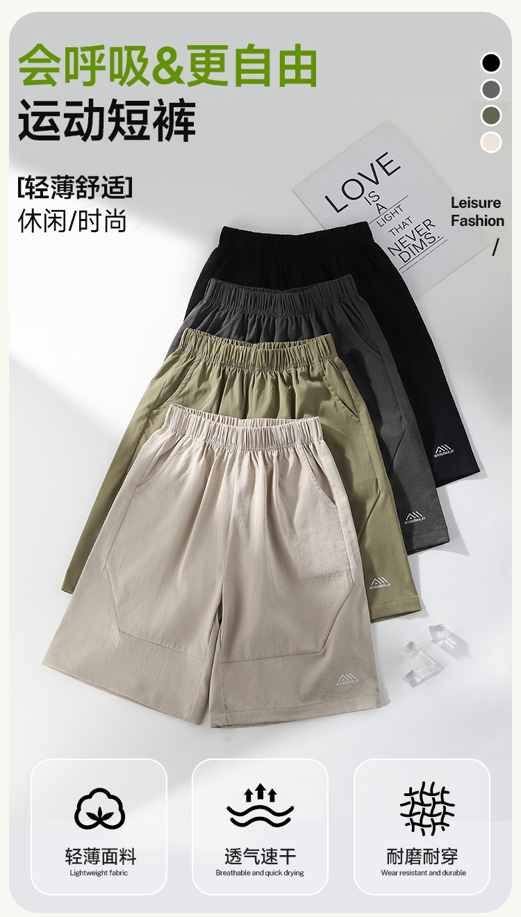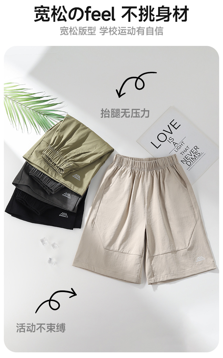 어린이 5 점 바지 여름 얇은 소년의 느슨한 통기성 캐주얼 스포츠 중대형 어린이를위한 빠른 건조 바지