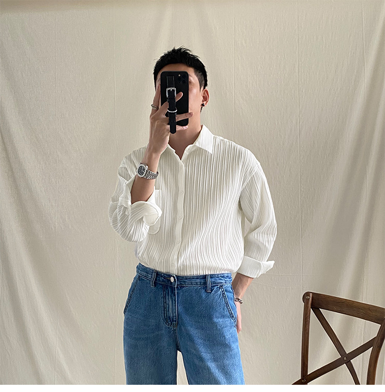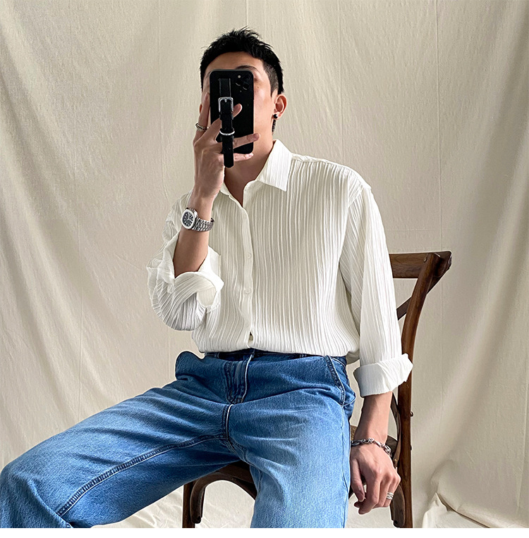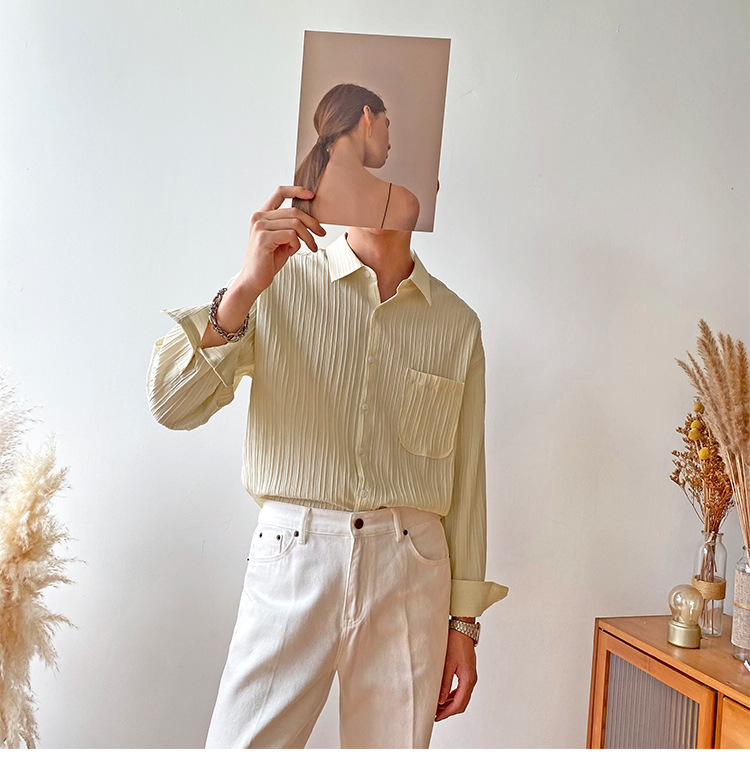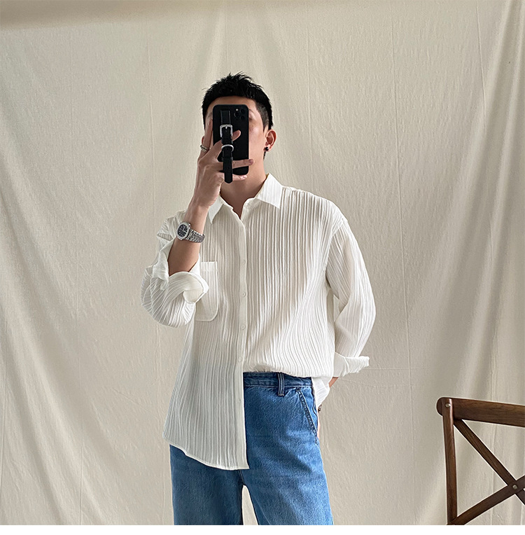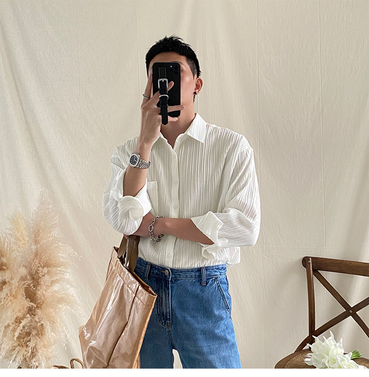 2025 국경 다림질 비 다림질 화이트 셔츠 여름 빛 성숙한 바람 느슨한 단색 긴팔 셔츠 얇은 캐주얼