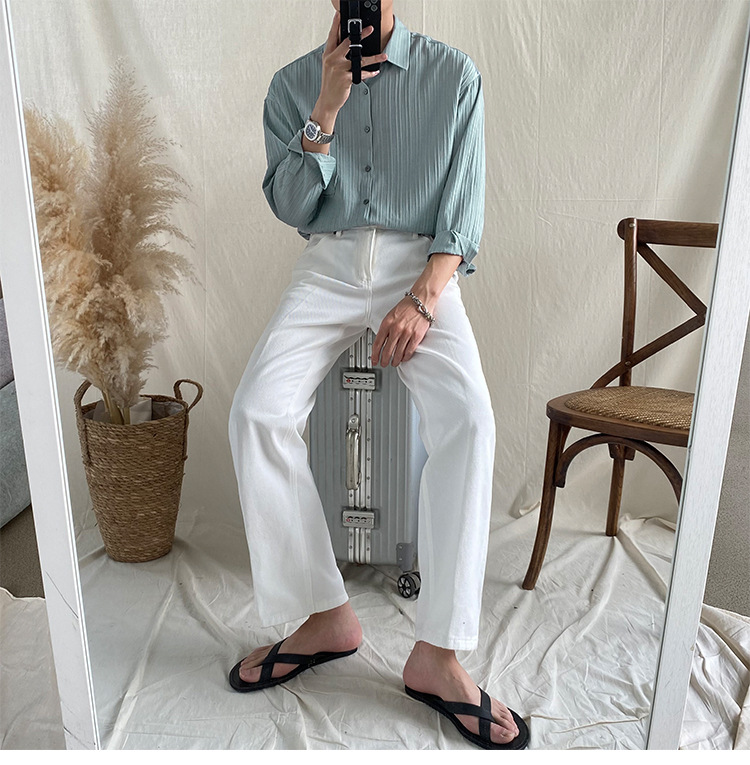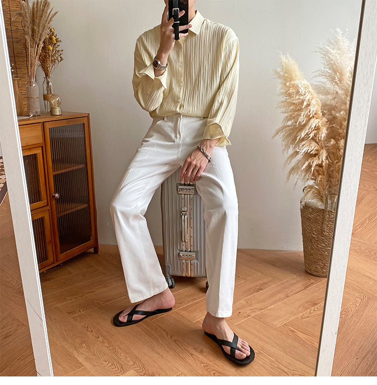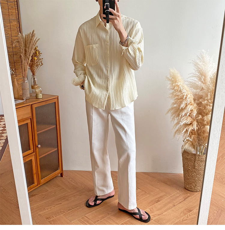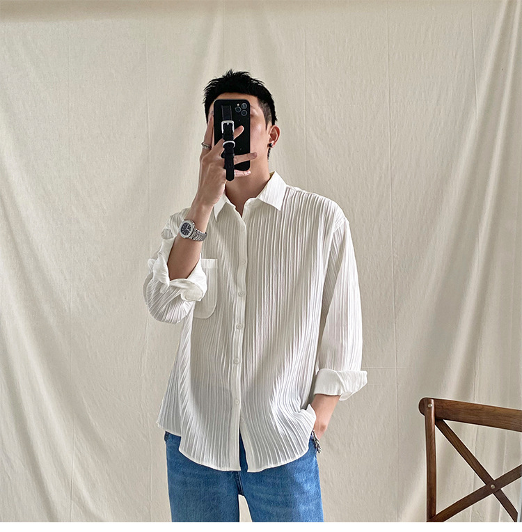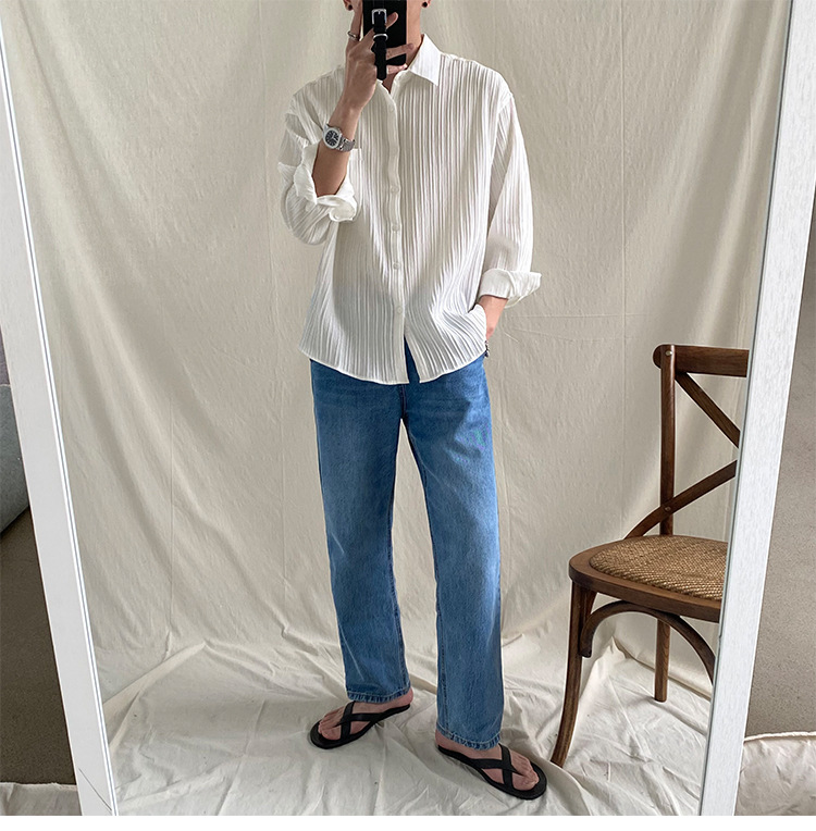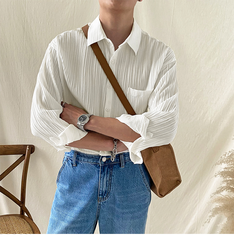 2025 국경 다림질 비 다림질 화이트 셔츠 여름 빛 성숙한 바람 느슨한 단색 긴팔 셔츠 얇은 캐주얼