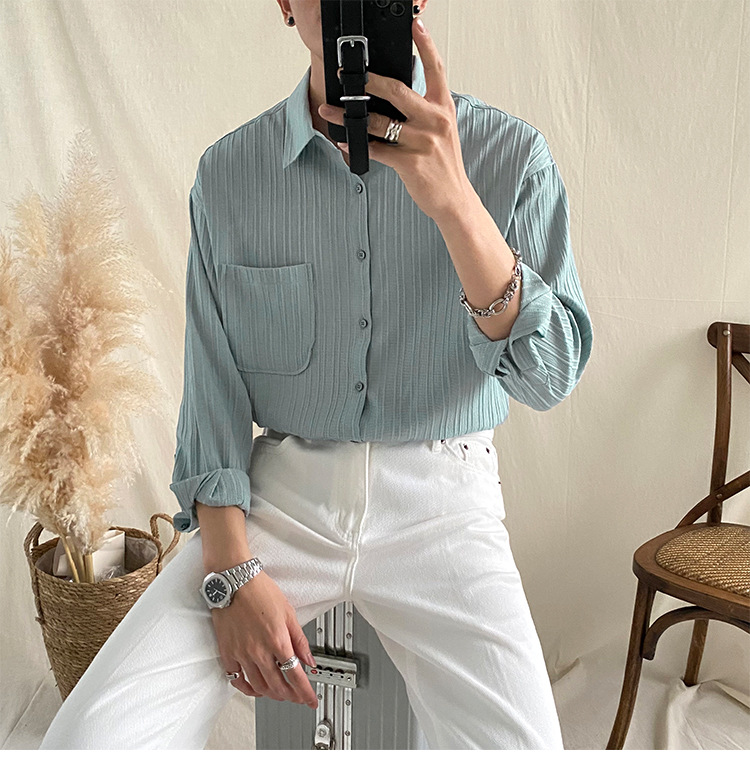 2025 국경 다림질 비 다림질 화이트 셔츠 여름 빛 성숙한 바람 느슨한 단색 긴팔 셔츠 얇은 캐주얼스토어 가기