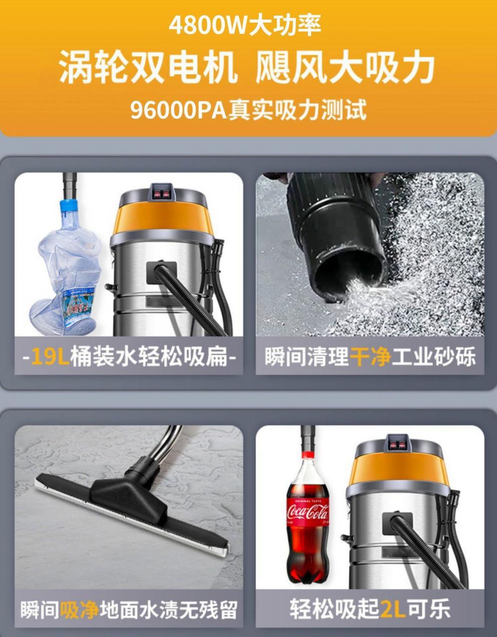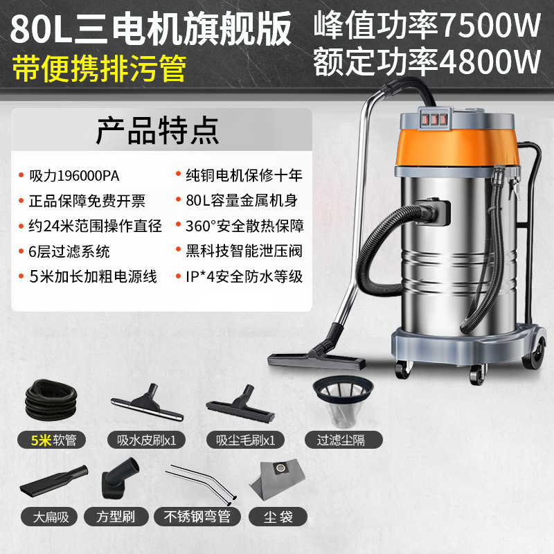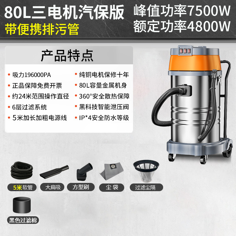 • 최고 전력 7500W+195998PA 흡입력*80L 3모터 자동차 보호 모델