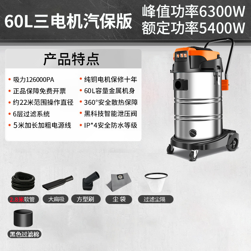 • 최고 전력 6300W+125998PA 흡입*60L 3모터 자동차 보호 모델