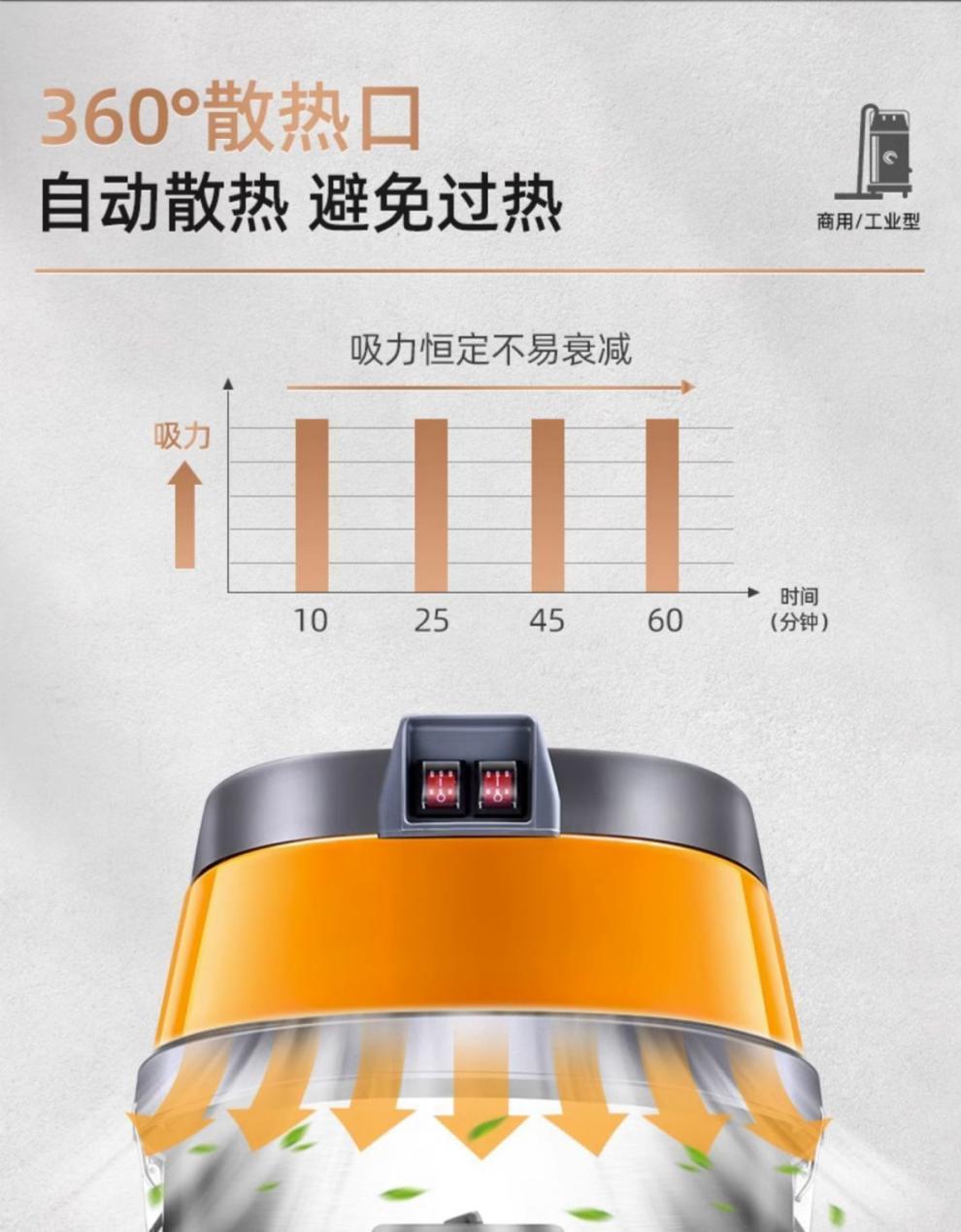 • 피크 전력 3600W+38998PA 흡입력*55L 단일 모터 속도 조절 모델