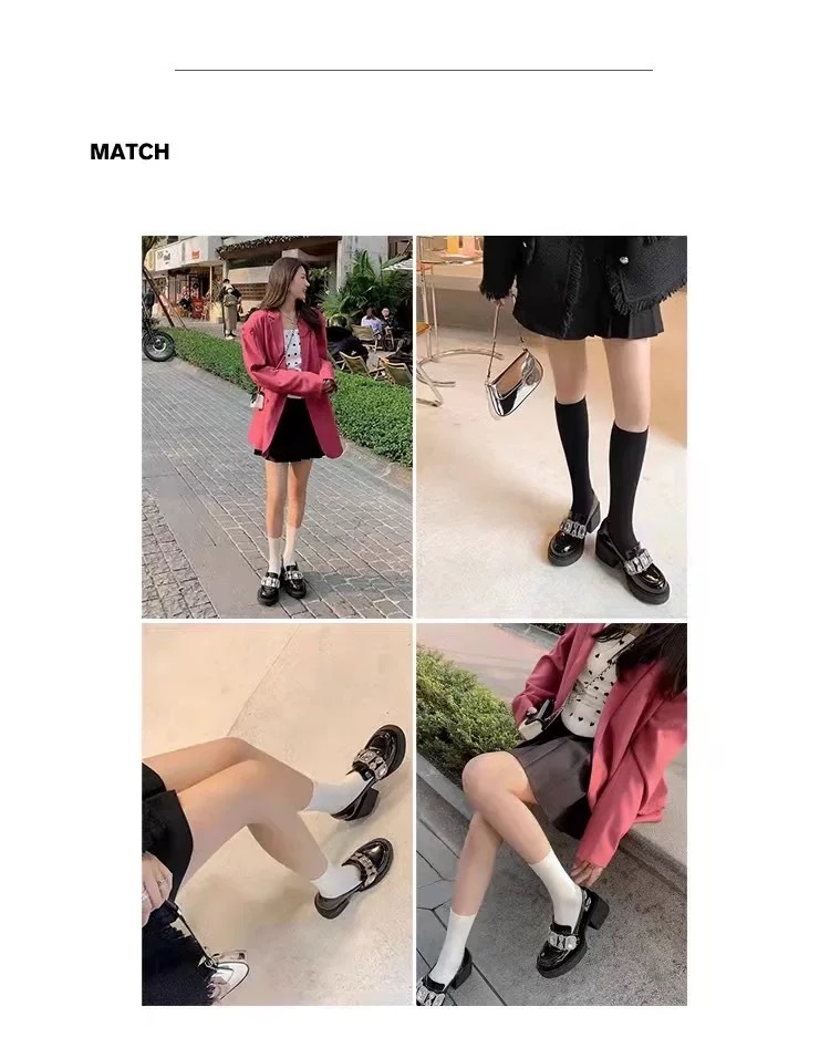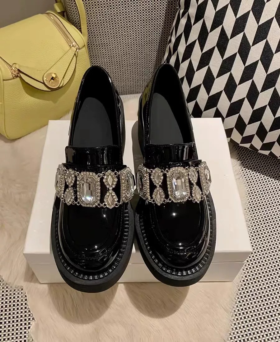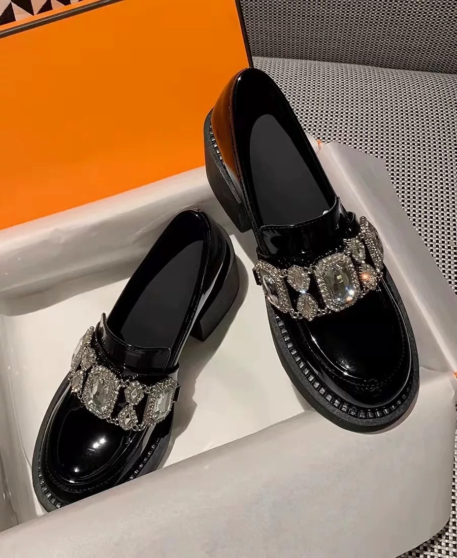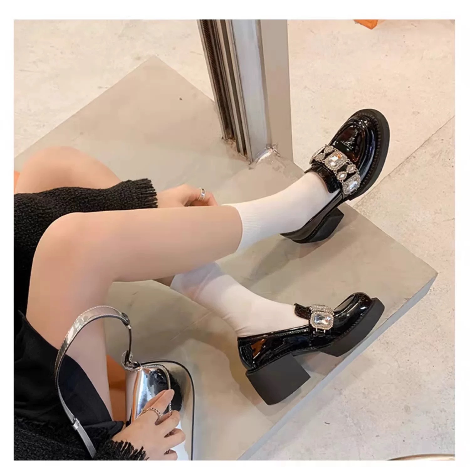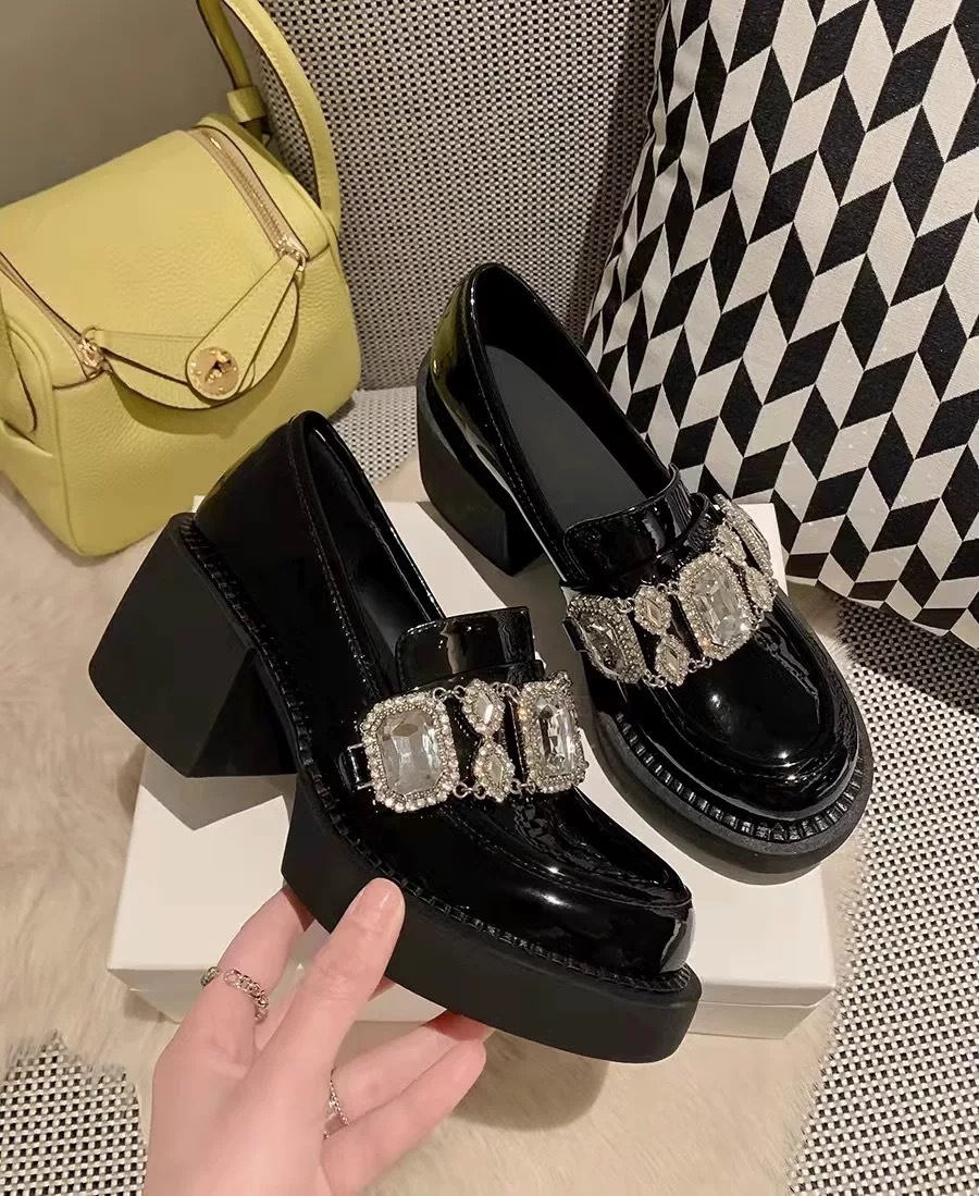 연예인 스타일 ~ 넷 연예인 틈새 디자인 센스 싱글 신발 여성의 봄과 가을 굵은 뒤꿈치 작은 가죽 신발 영국 높이 증가 두꺼운 바닥 로퍼스토어 가기