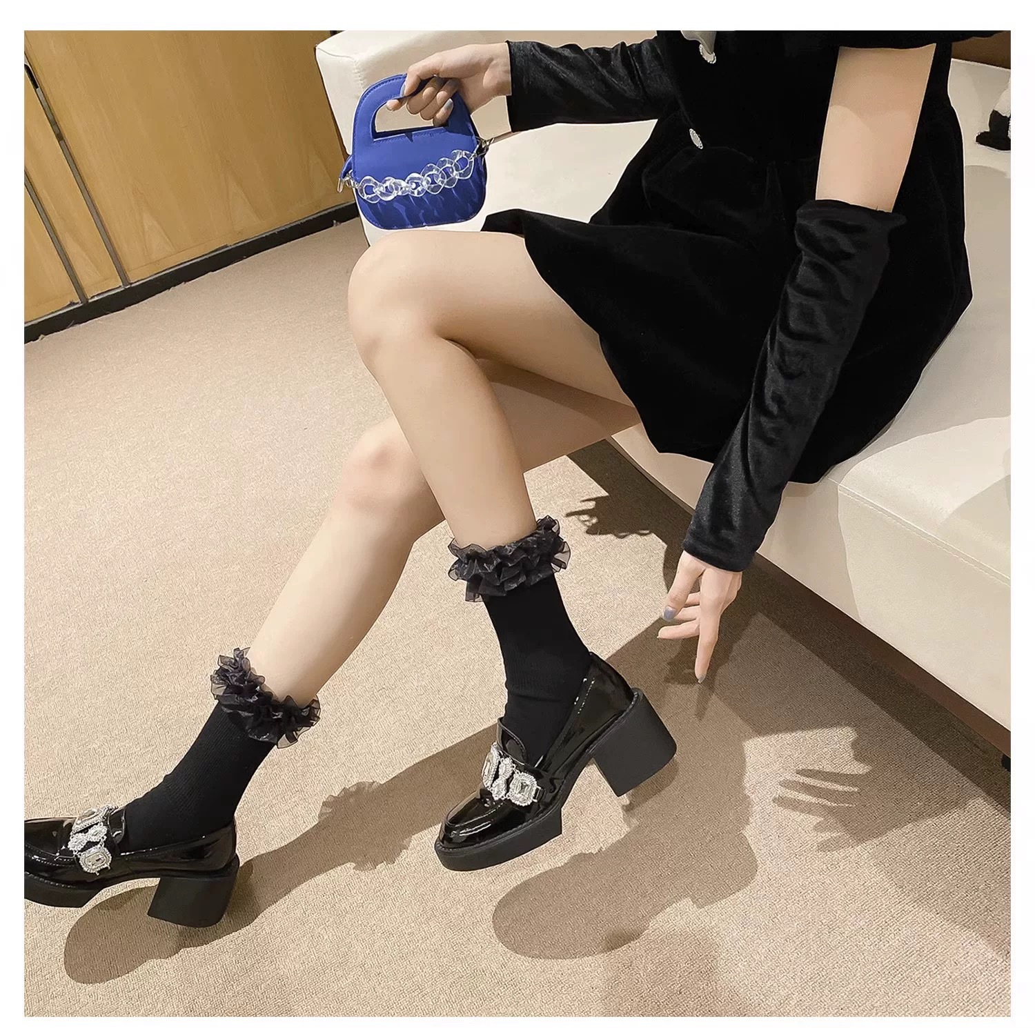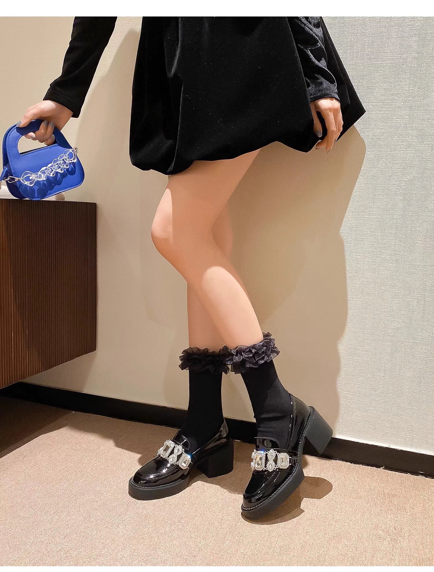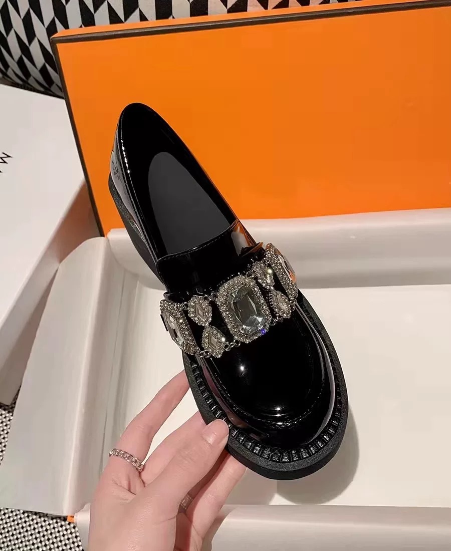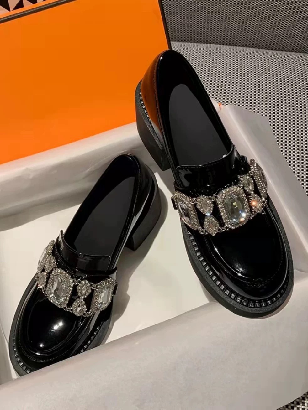 연예인 스타일 ~ 넷 연예인 틈새 디자인 센스 싱글 신발 여성의 봄과 가을 굵은 뒤꿈치 작은 가죽 신발 영국 높이 증가 두꺼운 바닥 로퍼스토어 가기