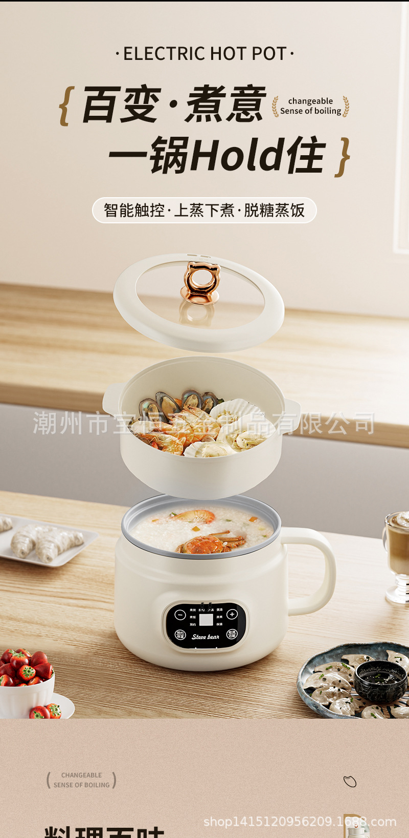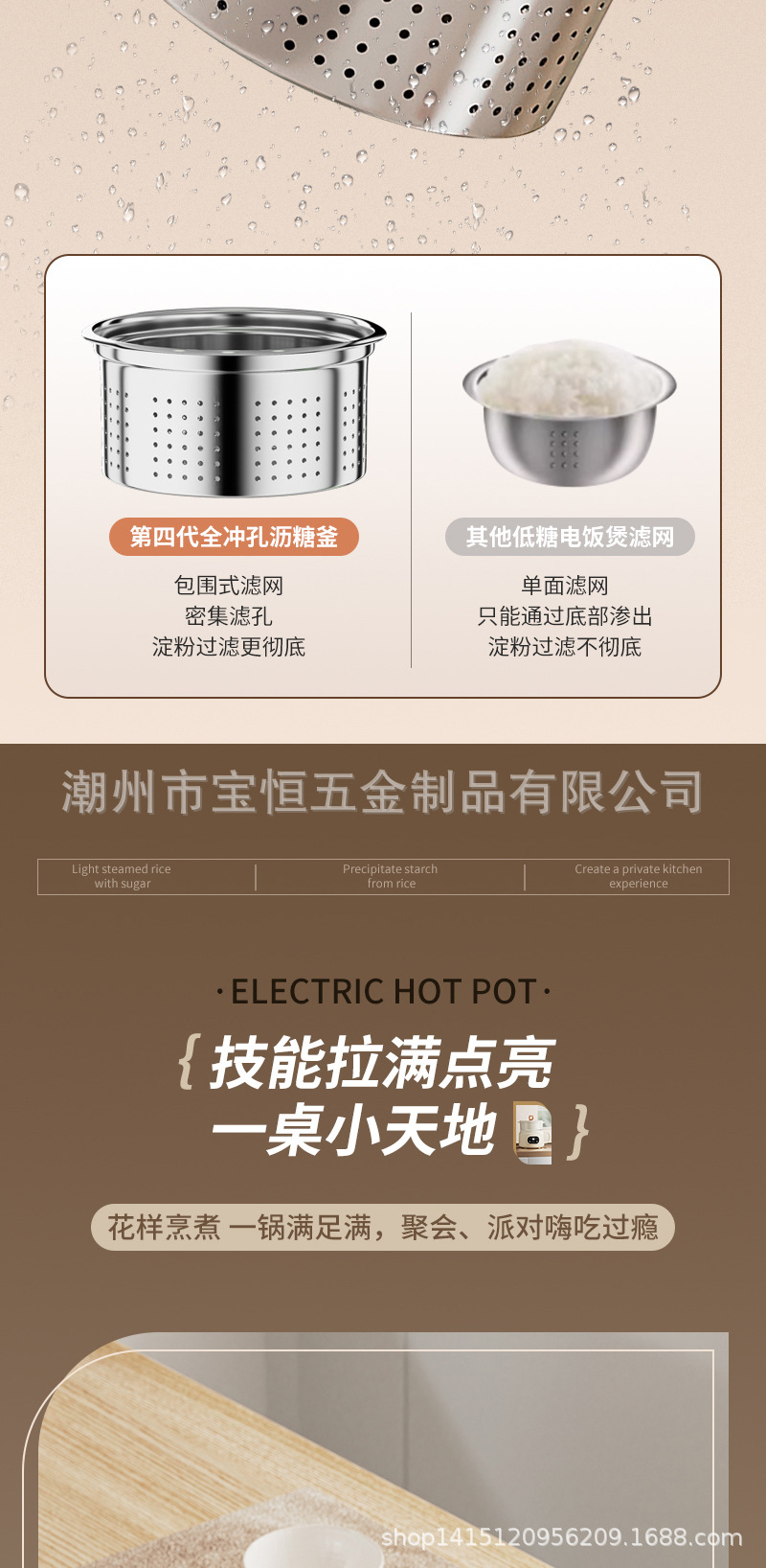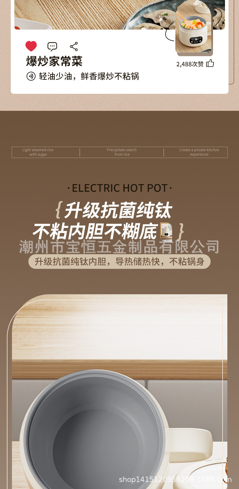 다기능 전기 냄비 전기 뜨거운 냄비 전기 요리 냄비 가정용 전기 밥솥 김이 통합 티타늄 냄비 전기 밥솥 비 스틱 냄비스토어 가기
