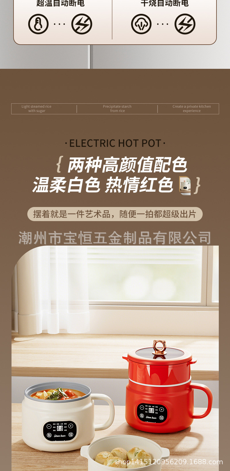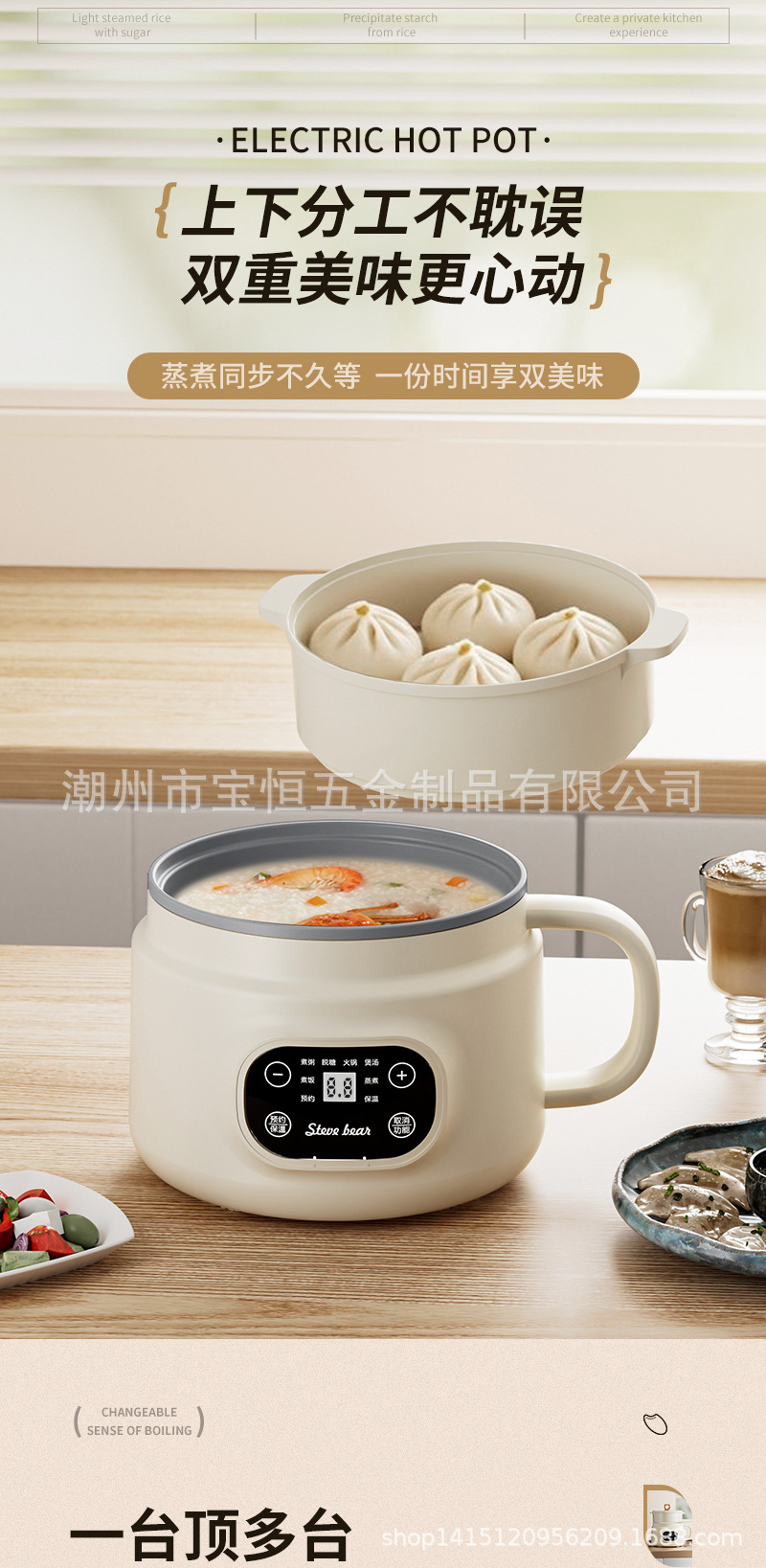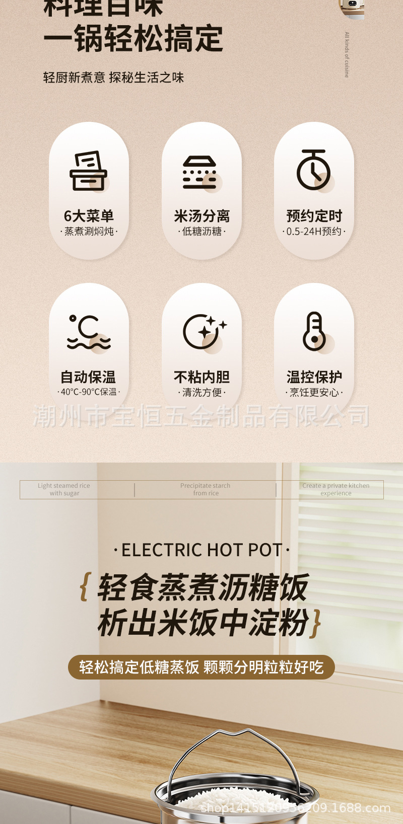 다기능 전기 냄비 전기 뜨거운 냄비 전기 요리 냄비 가정용 전기 밥솥 김이 통합 티타늄 냄비 전기 밥솥 비 스틱 냄비스토어 가기