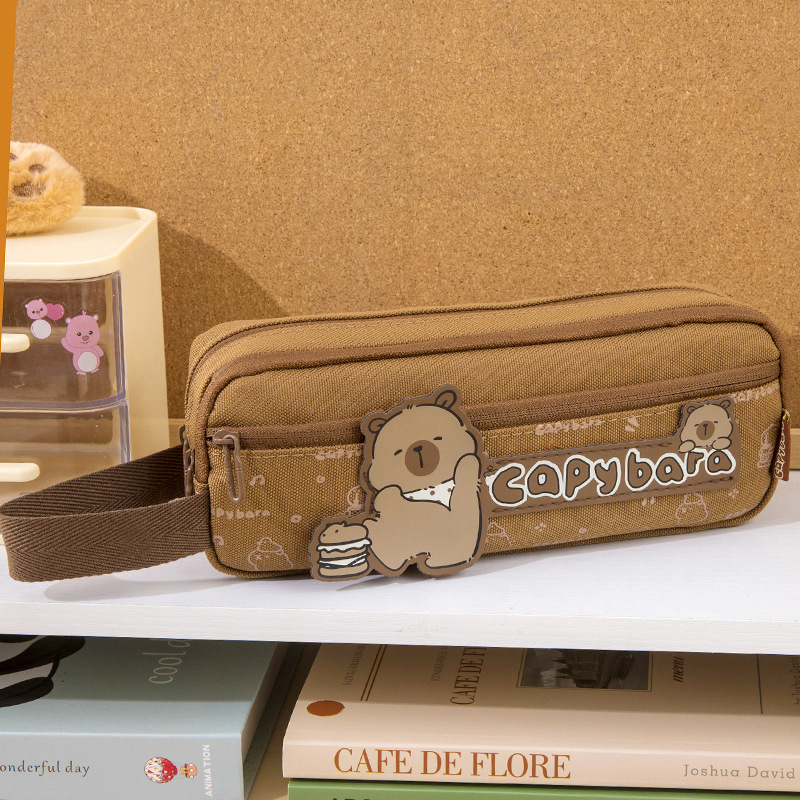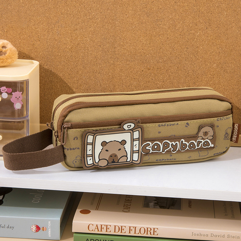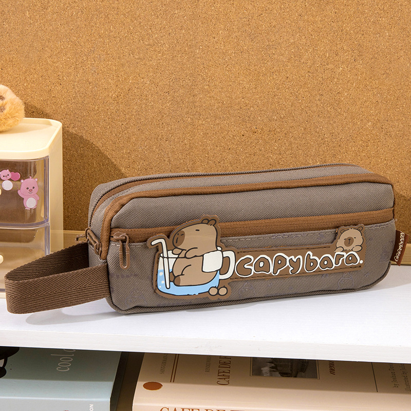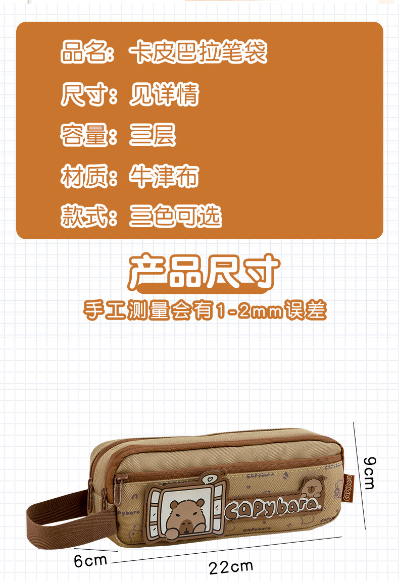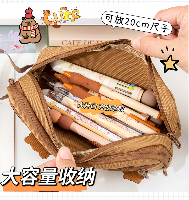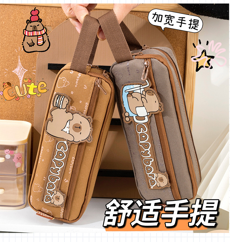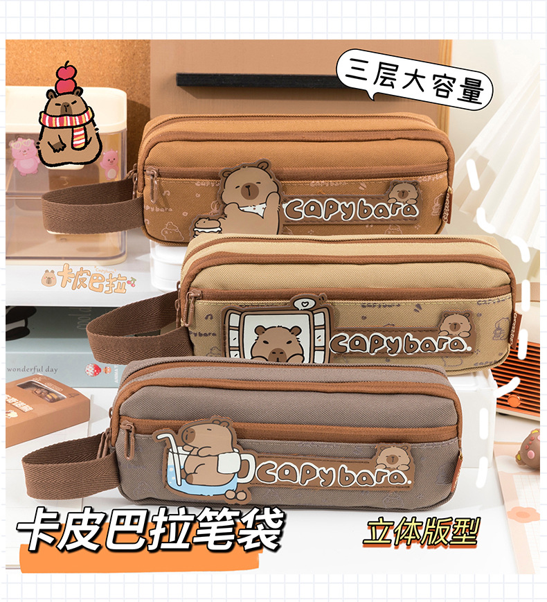 카피 발라 연필 케이스 소년 소녀 고등학교 및 중학교 학생들을위한 3 층 대용량 문구 가방 귀여운 카피 바라 연필 케이스스토어 가기