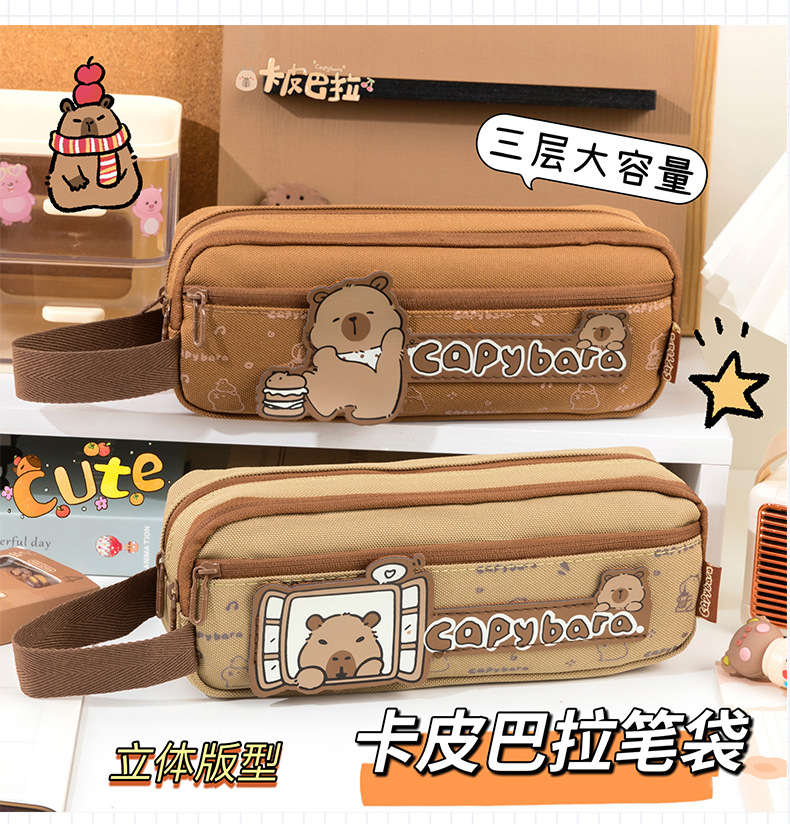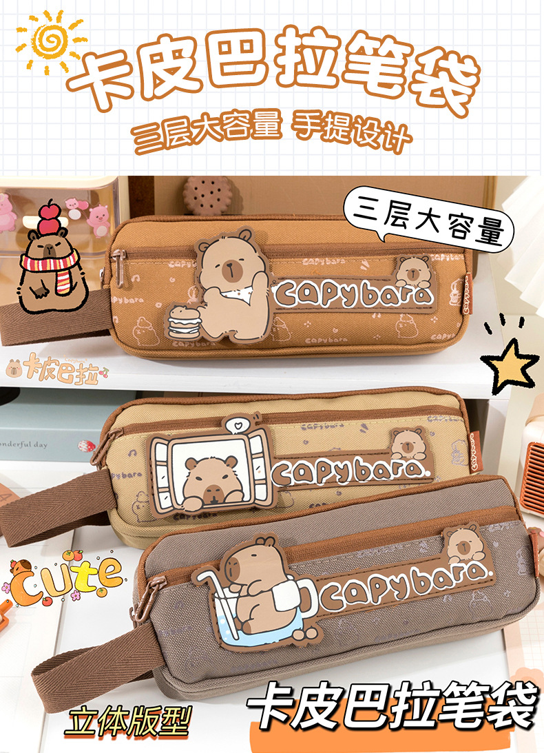 카피 발라 연필 케이스 소년 소녀 고등학교 및 중학교 학생들을위한 3 층 대용량 문구 가방 귀여운 카피 바라 연필 케이스