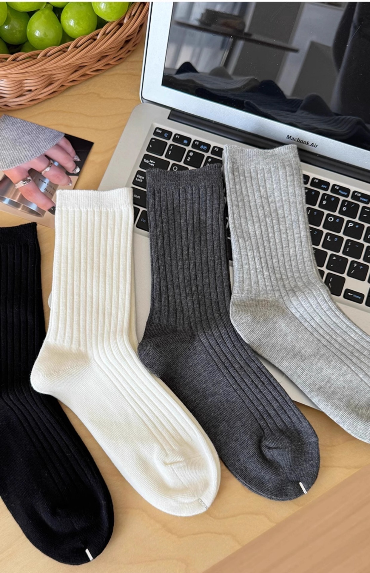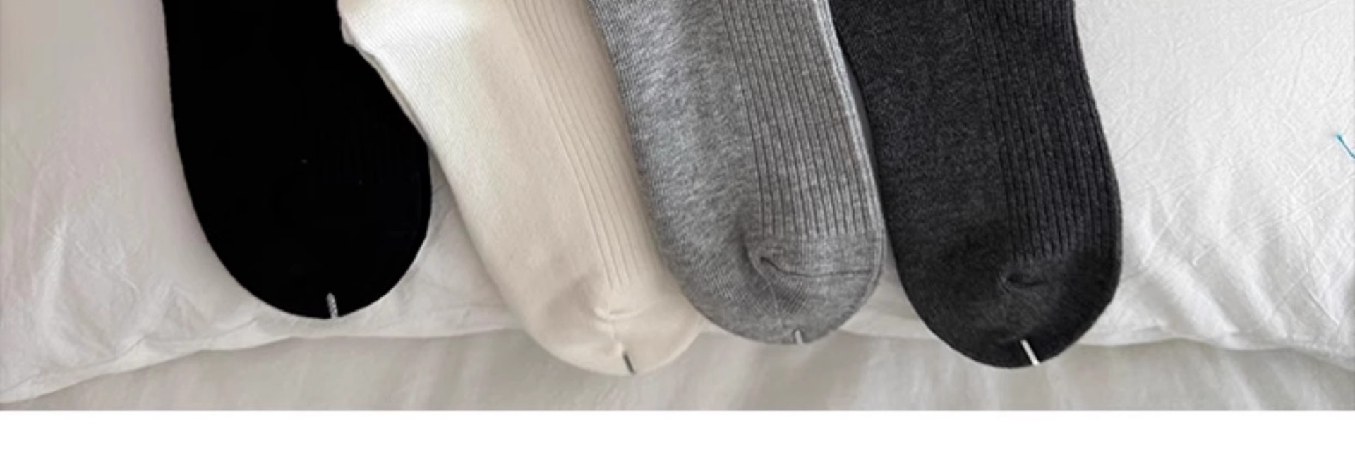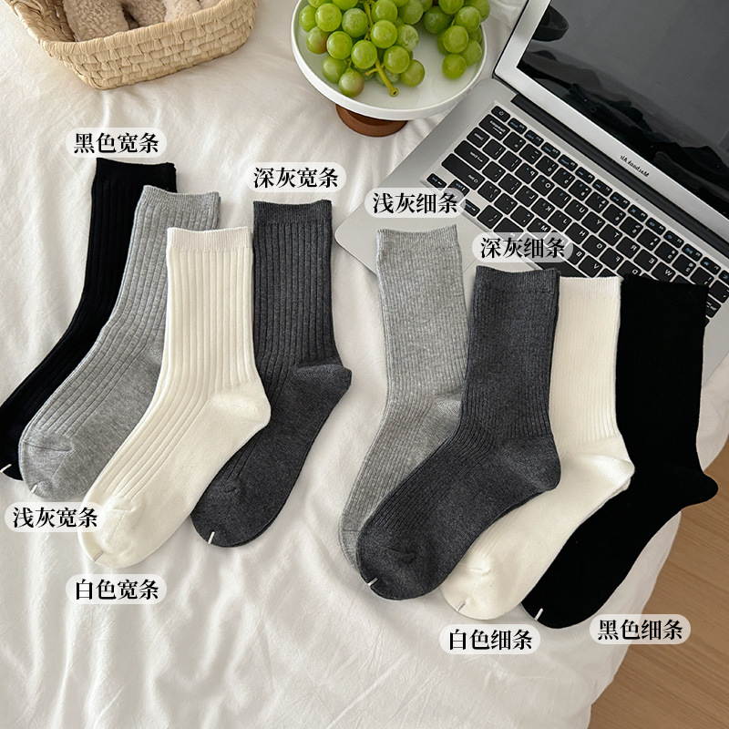 여성용 흰색 양말 봄 가을 단색 중목 양말 순면 항균 방취 한국 스타일 긴 양말 여성용 회색 스타킹 가을스토어 가기