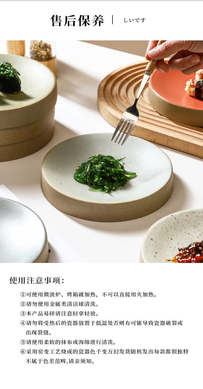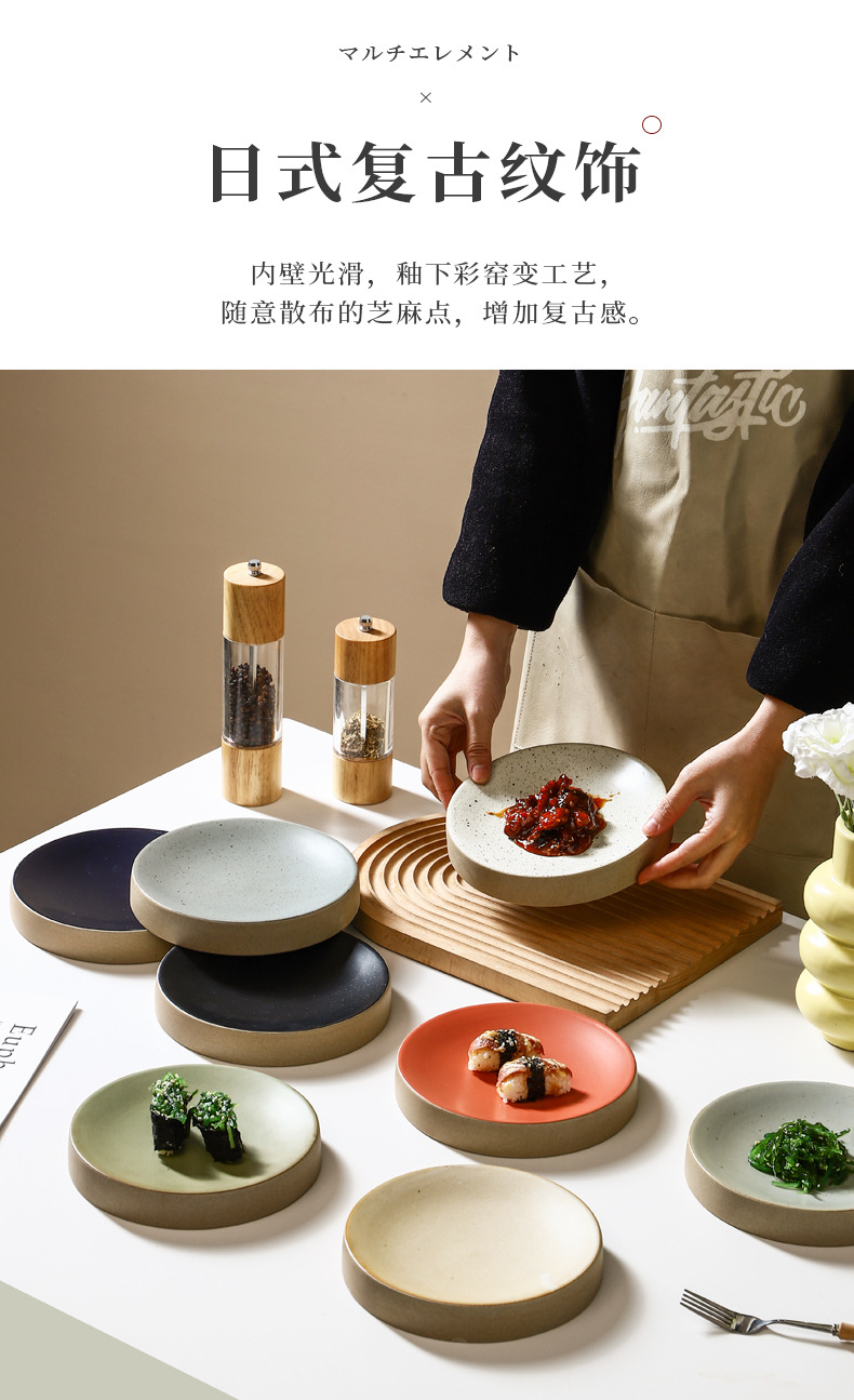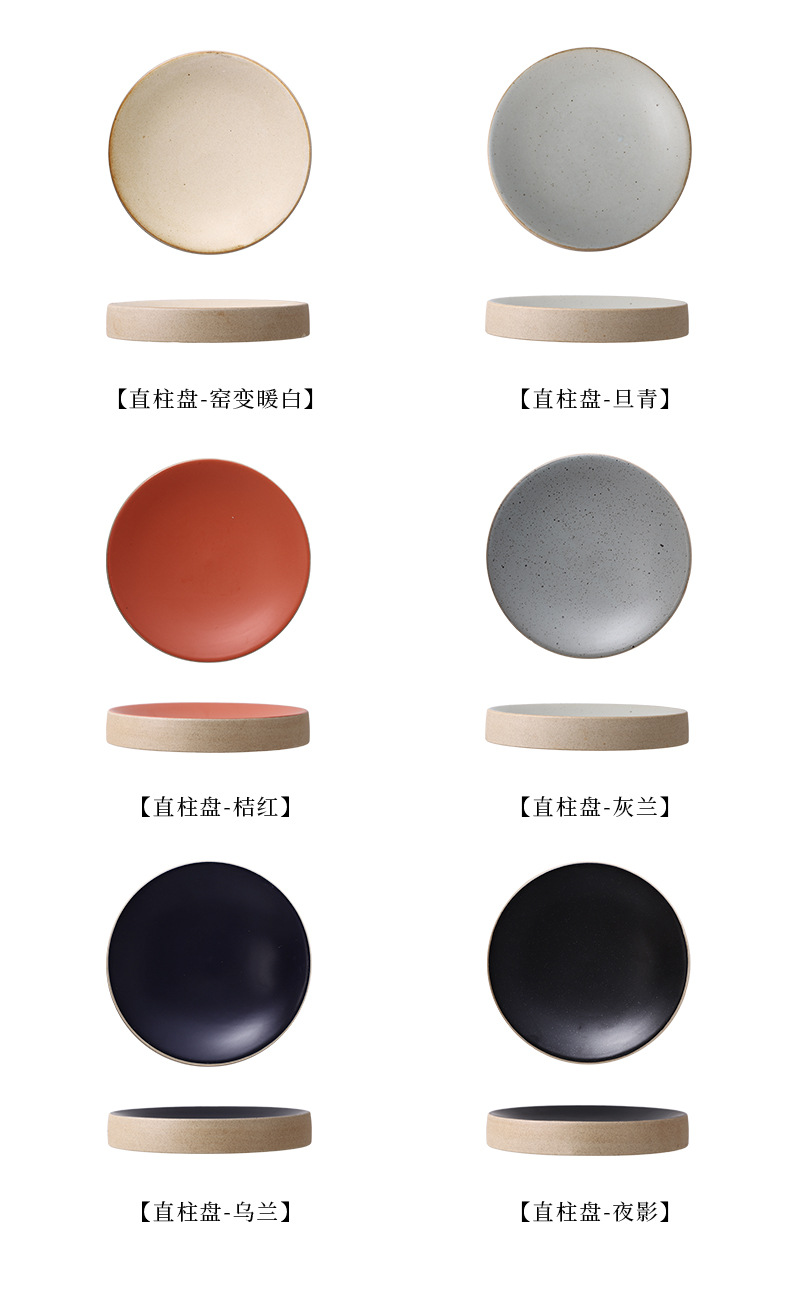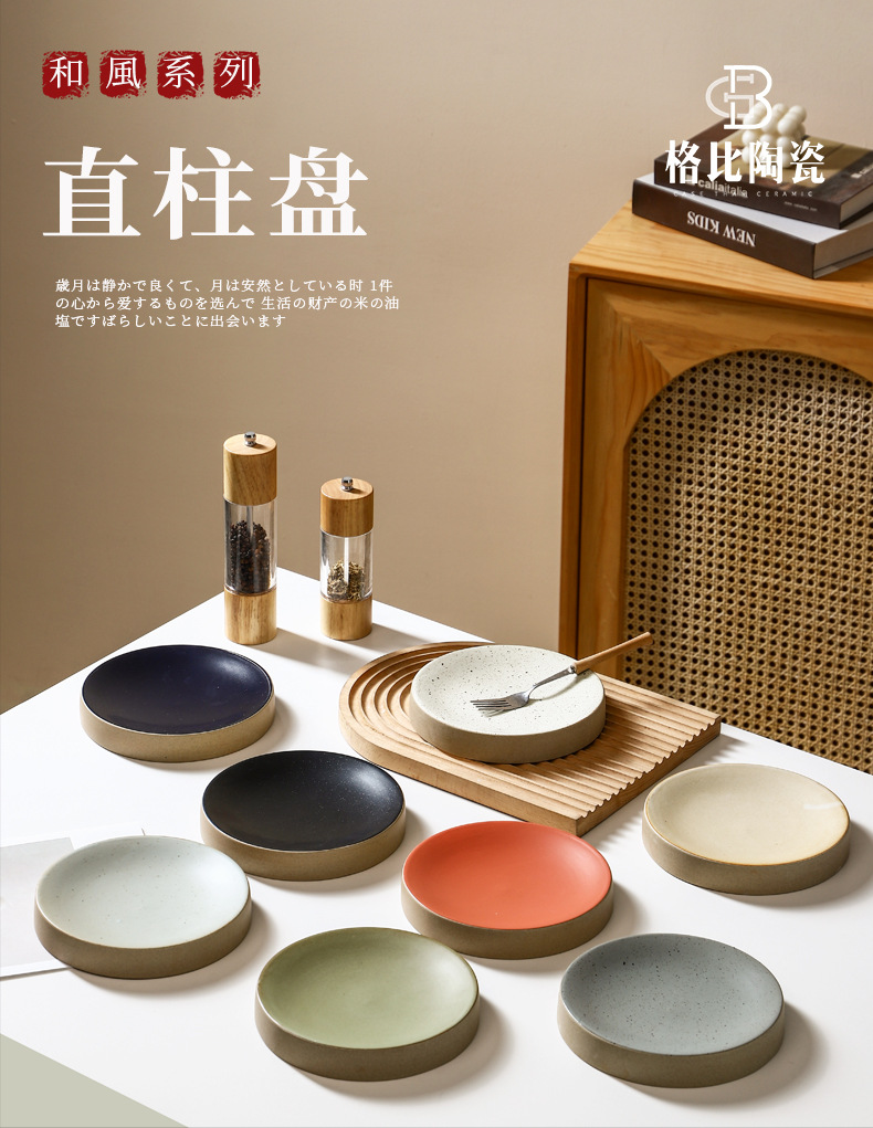 고급 서양 요리 판 레트로 라운드 플레이트 상업용 세라믹 식기 원통 모양 디너 플레이트 간단한 케이크 디쉬 포인트 플레이트스토어 가기