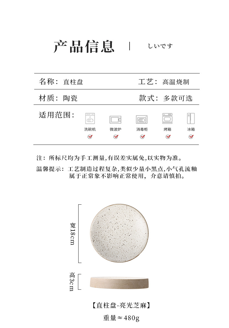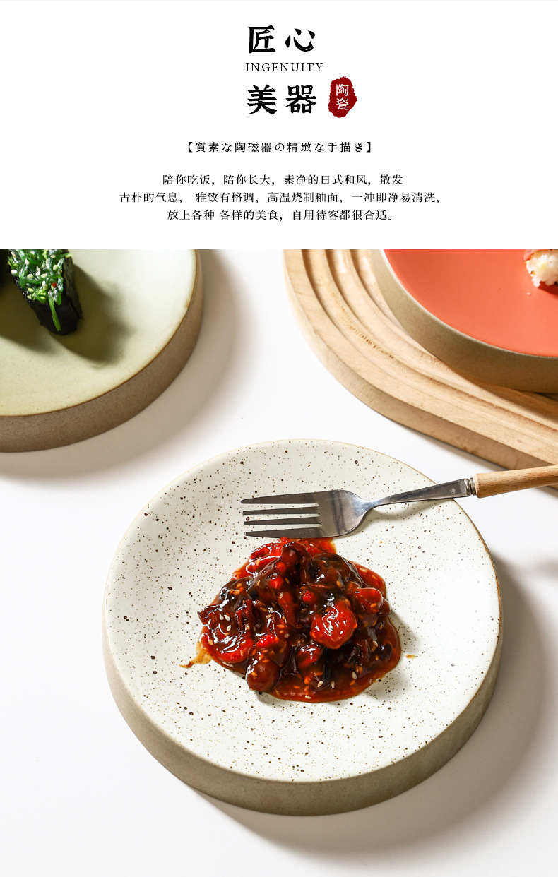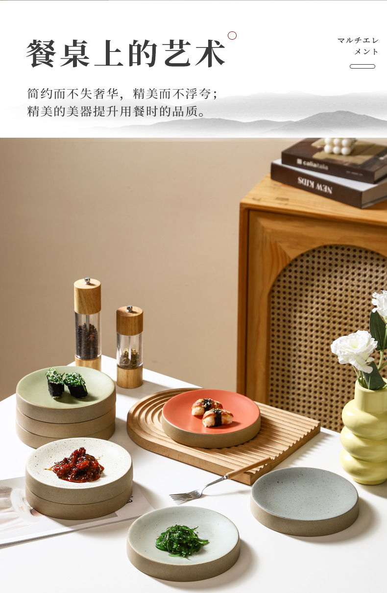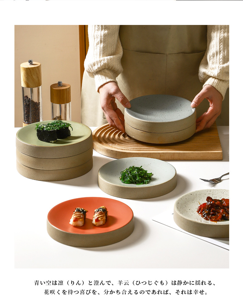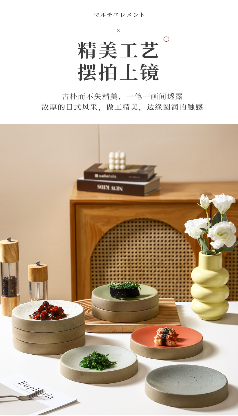 고급 서양 요리 판 레트로 라운드 플레이트 상업용 세라믹 식기 원통 모양 디너 플레이트 간단한 케이크 디쉬 포인트 플레이트스토어 가기
