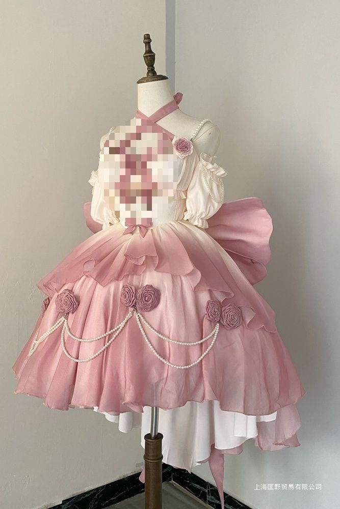 여름 새로운 달콤한 그라디언트 핑크 원피스 여성 큰 공주 중공업 꽃 원피스스토어 가기