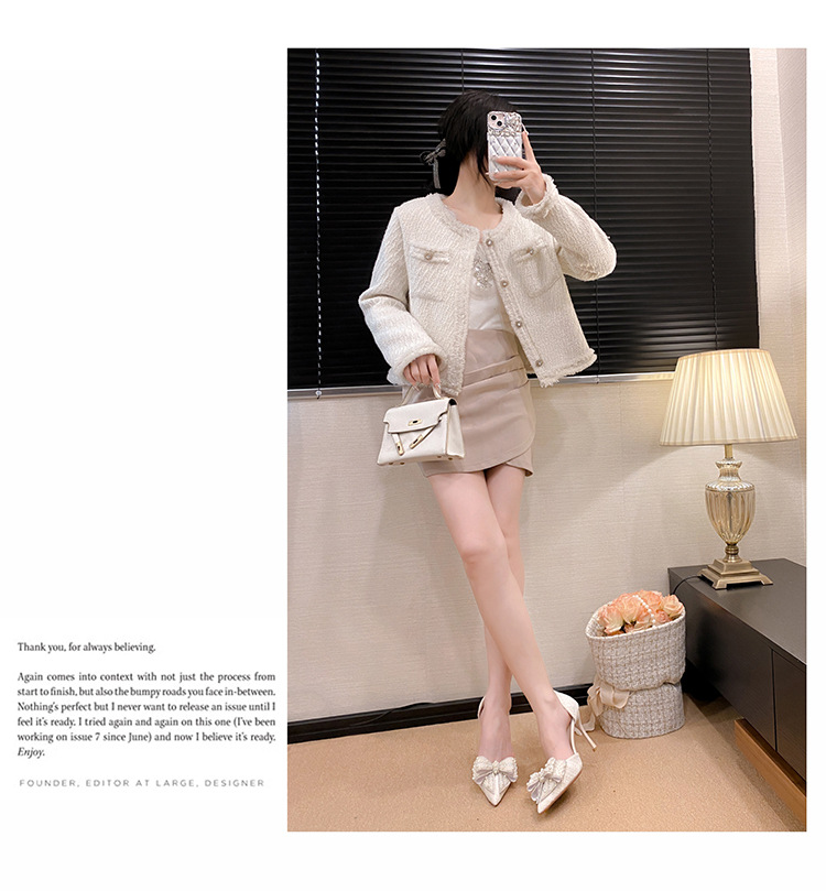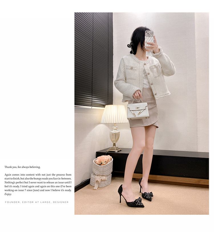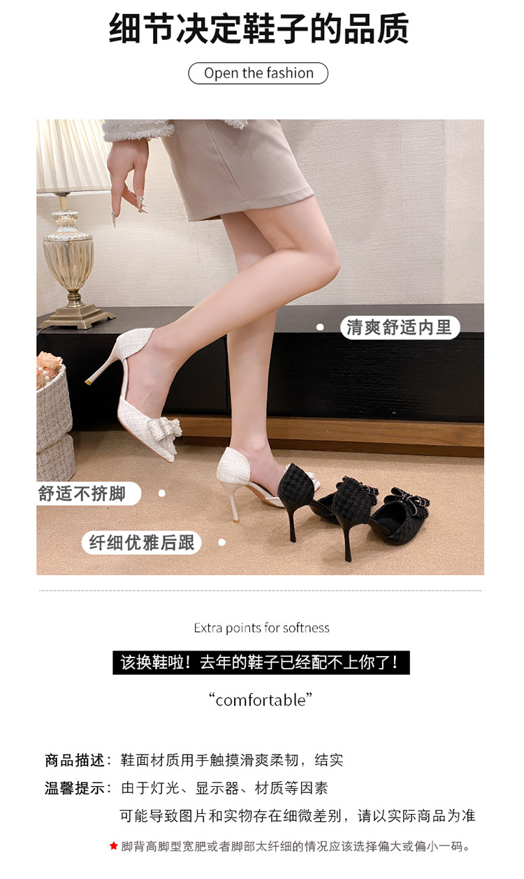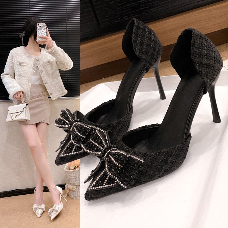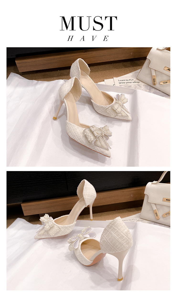 활 할로우 샌들 2025 여름 새로운 진주 샤넬 스타일 화이트 하이힐 여성용 스틸레토 힐 포인팅 샌들스토어 가기