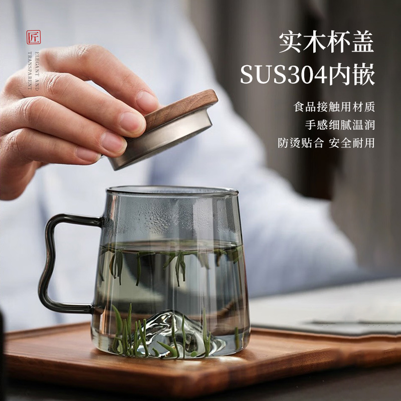 일본식 유리 가정용 대용량 워터 컵 고온 저항성 티 컵 마운틴 뷰 컵 크리에이티브 오피스 컵 워터 컵스토어 가기