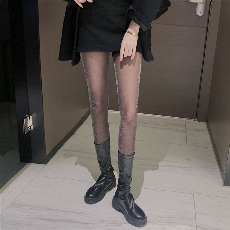 실버 스타킹 Ins 스타일 스타킹 섹시한 블랙 팬티 스타킹 얇은 Bottoming Pants 인터넷 연예인 블랙 실크 봄과 가을 여름 여성