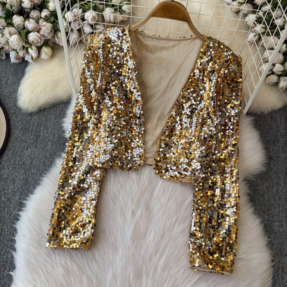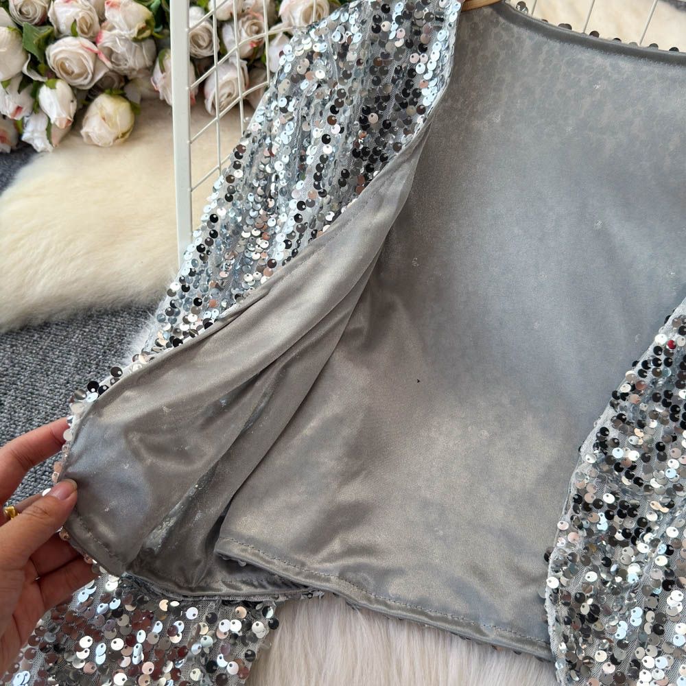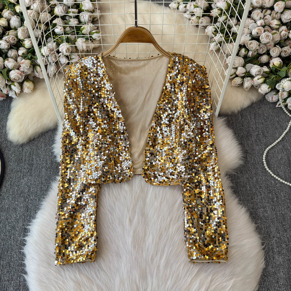 소녀 2025 봄과 가을 새로운 스파클링 스퀸 재킷 한국 스타일 유행 슬림핏 올매치 롱 슬리브 자켓 짧은 카디건