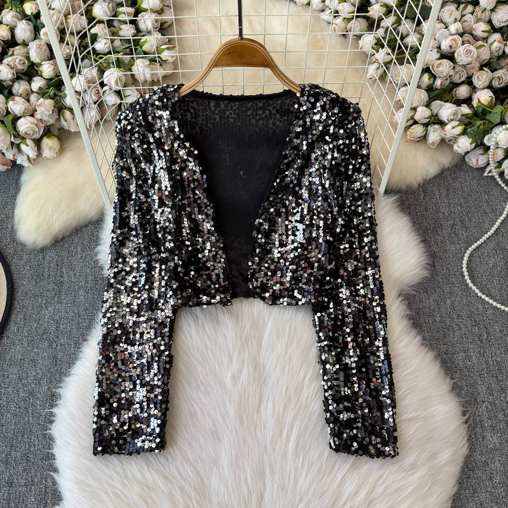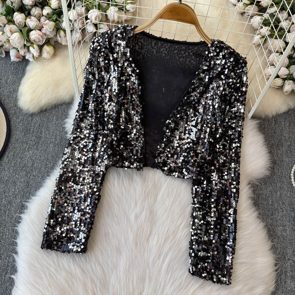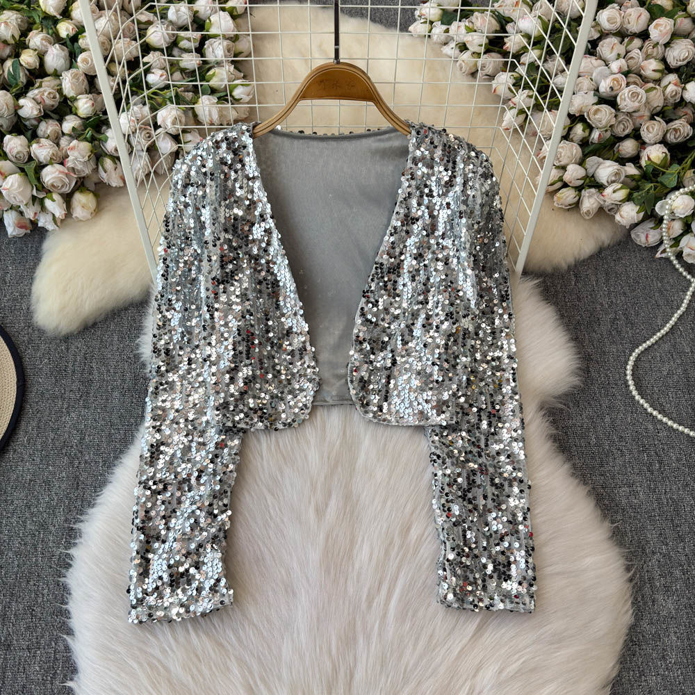 소녀 2025 봄과 가을 새로운 스파클링 스퀸 재킷 한국 스타일 유행 슬림핏 올매치 롱 슬리브 자켓 짧은 카디건스토어 가기