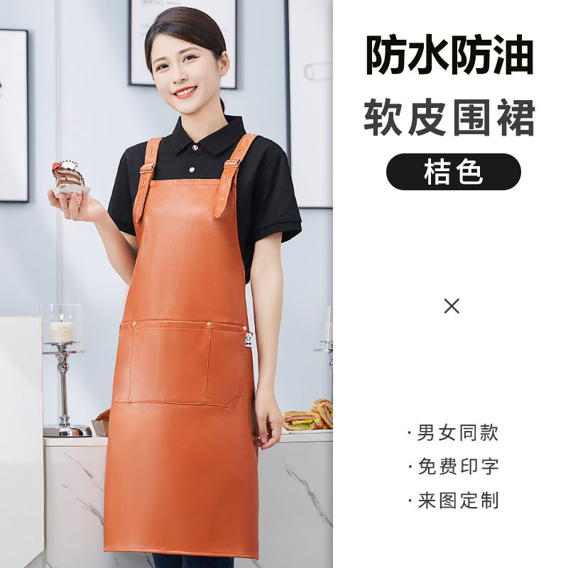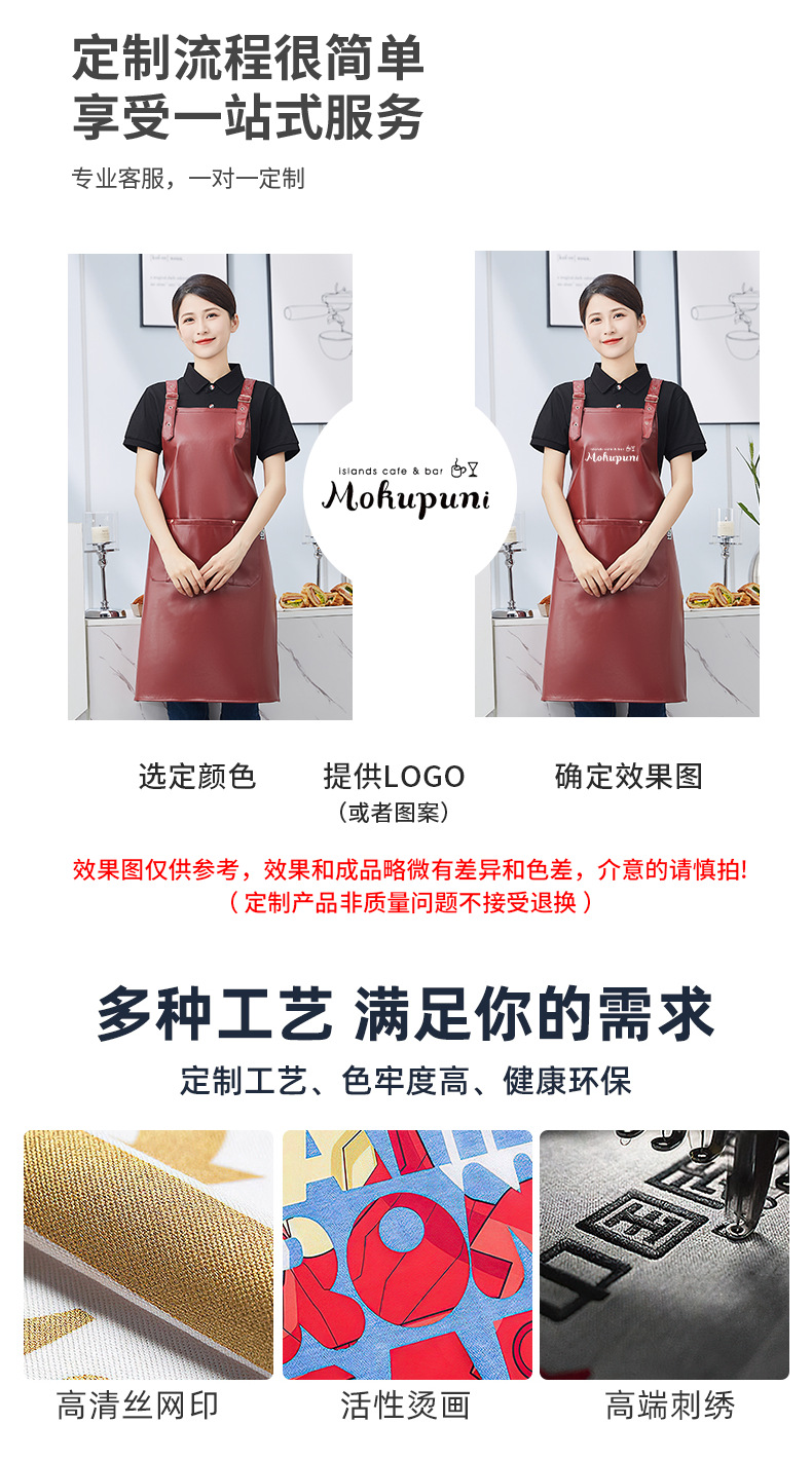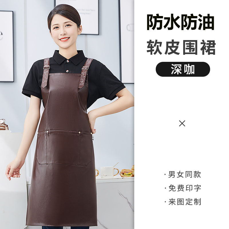 방수 및 내유성 가죽 앞치마 맞춤 로고 인쇄 가정용 주방 케이터링 수생 우유 차 가게 작업복