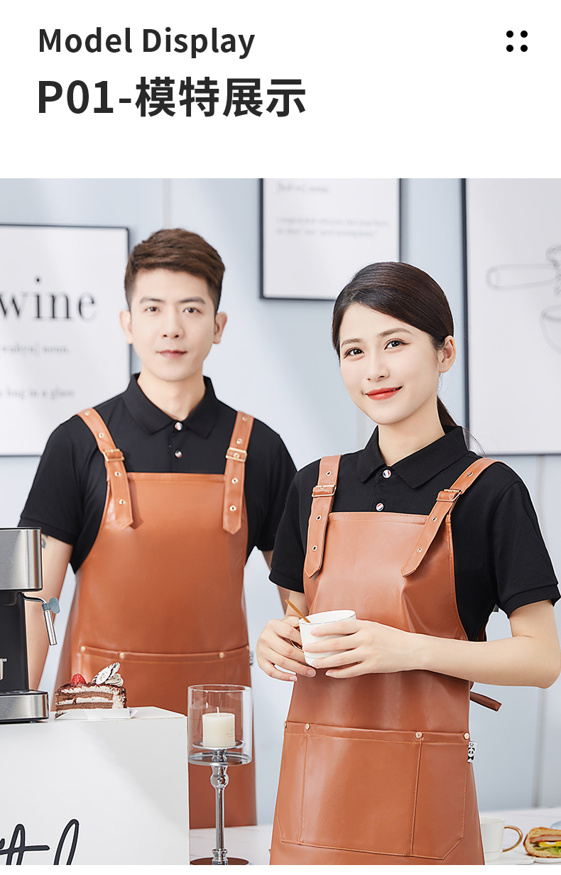 방수 및 내유성 가죽 앞치마 맞춤 로고 인쇄 가정용 주방 케이터링 수생 우유 차 가게 작업복스토어 가기