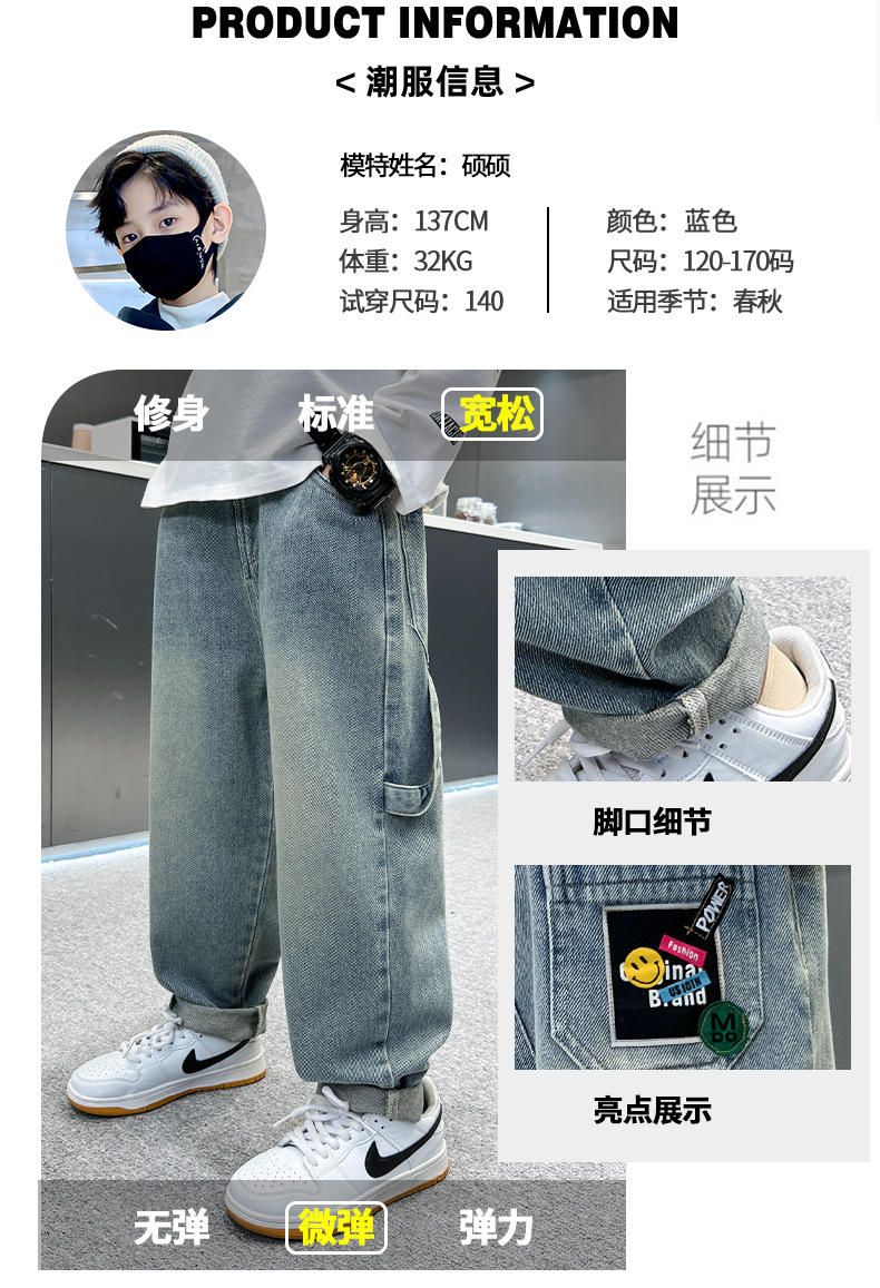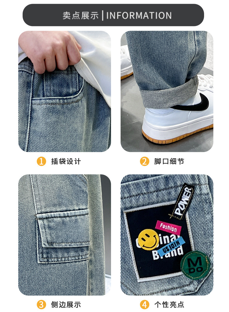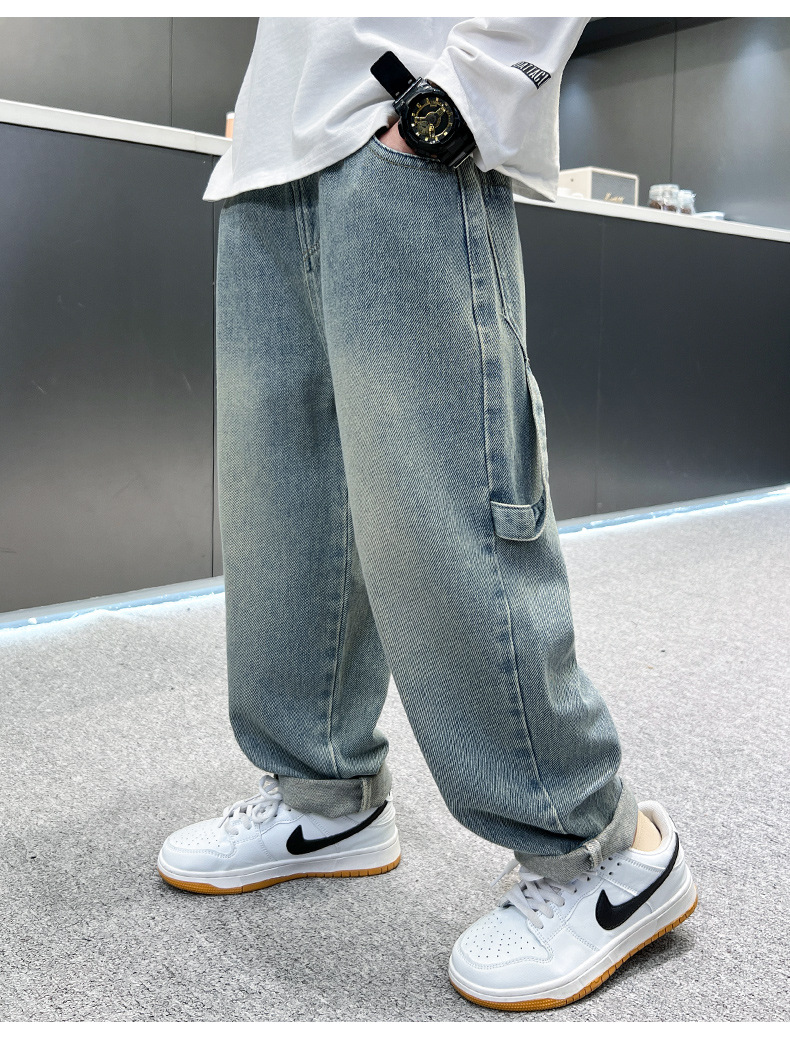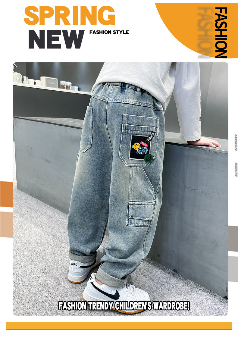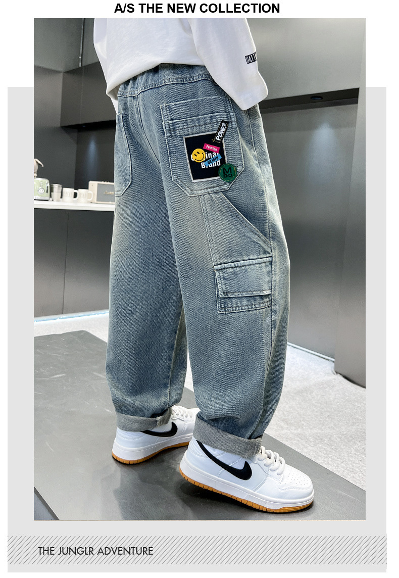 아동복 소년 여름 바지 2025 새로운 여름 새 스타일 중대형 어린이 작업복 청바지 여름 소년 바지스토어 가기